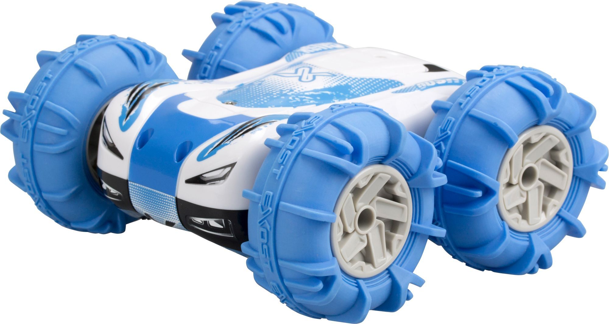 Der Exost Aquacross 360 kann auf der Ober- und Unterseite fahren, und das sowohl im Wasser wie auf dem Land! Hindernisse greift er in jedem Winkel an. Mit weichen Exost Pneus. Die Batterie des Fahrzeugs ist wiederaufladbar. Reichweite 25 m.