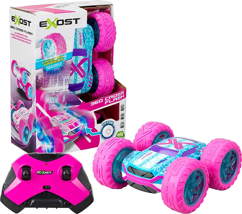 Mit seinen extragrossen und sehr stabilen Reifen und der spektakulären 360°-Action kann der Exost Cross Flash alle Hindernisse überwinden. LED-Lichteffekte an den Rädern und LED-Scheinwerfer sorgen für spektakuläre Drifts im Dunkeln!
