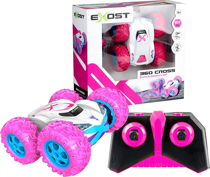 Mit seinen grossen, stabilen Reifen und der spektakulären 360°-Action kann der Exost Cross alle Hindernisse überwinden. Er kann blitzschnell Beschleunigung und fährt bis zu 12 km/h mit einer Reichweite von ca. 15 m. Frequenz 2,4 GHz.