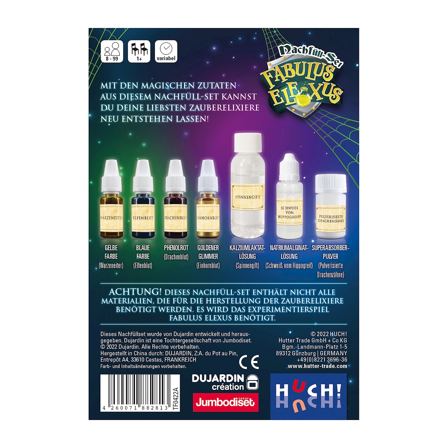 Mit den magischen Zutaten aus diesem Nachfüll-Set kannst du deine liebsten Zauberelixiere neu entstehen lassen! Achtung! Dieses Nachfüll-Set enthält nicht alle Materialien, die für die Herstellung der Zauberelixiere benötigt werden. Es wird das Experimentiersp...