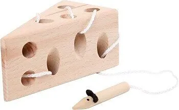 Wer frisst sich denn hier durch den Käse? Natürlich die kleine Maus! Schönes Fädelspiel aus FSC 100%-zertifiziertem, klar lackiertem Buchenholz zur Schulung der Motorik und Geduld. Mit etwas Geschick lässt sich die kleine Maus spielend leicht durch das geschni...