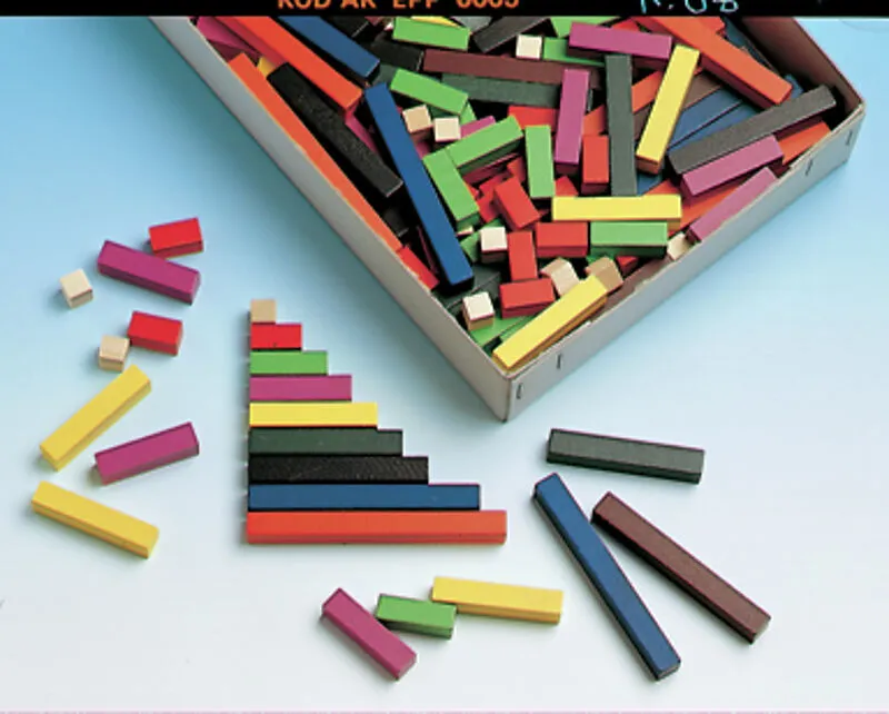 240 Stäbe in 10 Farben, in Kartonschachtel. 1-er = 50 Stück (naturfarben) 2-er = 50 Stück (rot) 3-er = 33 Stück (hellgrün) 4-er = 25 Stück (pink) 5-er = 20 Stück (gelb) 6-er = 16 Stück (dunkelgrün) 7-er = 14 Stück (schwarz) 8-er = 12 Stück (braun) 9-er = 10 S...