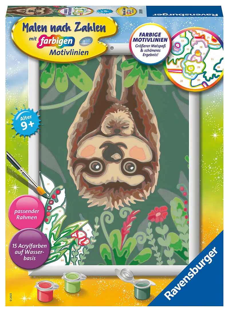 Farbige Motivlinien: Größerer Malspaß & ein schöneres Ergebnis! Dank der farbigen Motivlinien, können die Kinder das ganze Motiv Faultier-Liebe und die Farben schneller erkennen. Der Pinsel hat eine gute Führung und so entsteht nach und nach ein perfektes Bild...