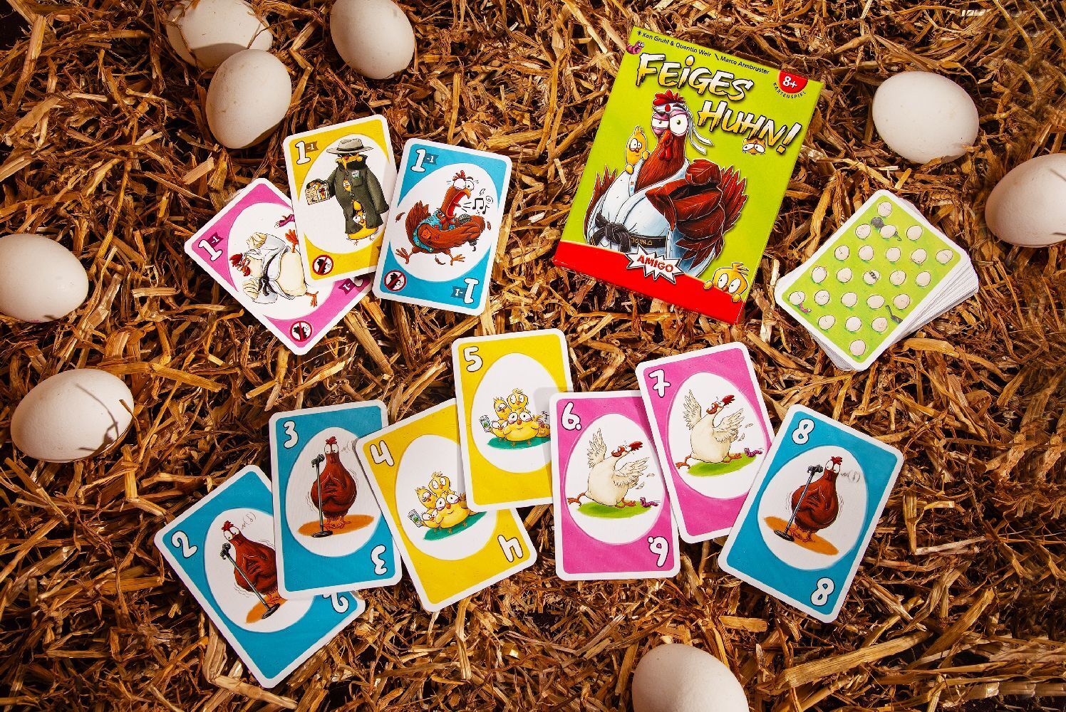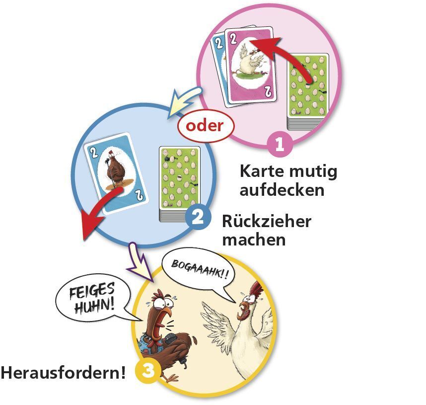 Sei kein feiges Huhn! Deckst du die nächste Karte auf oder kneifst du, weil du den ganzen Stapel kassierst, falls die Karte nicht passt? Während du noch überlegst, bekommst du schon ein Feiges Huhn! zugerufen und deine Entscheidung wird noch kniffliger. Traust...