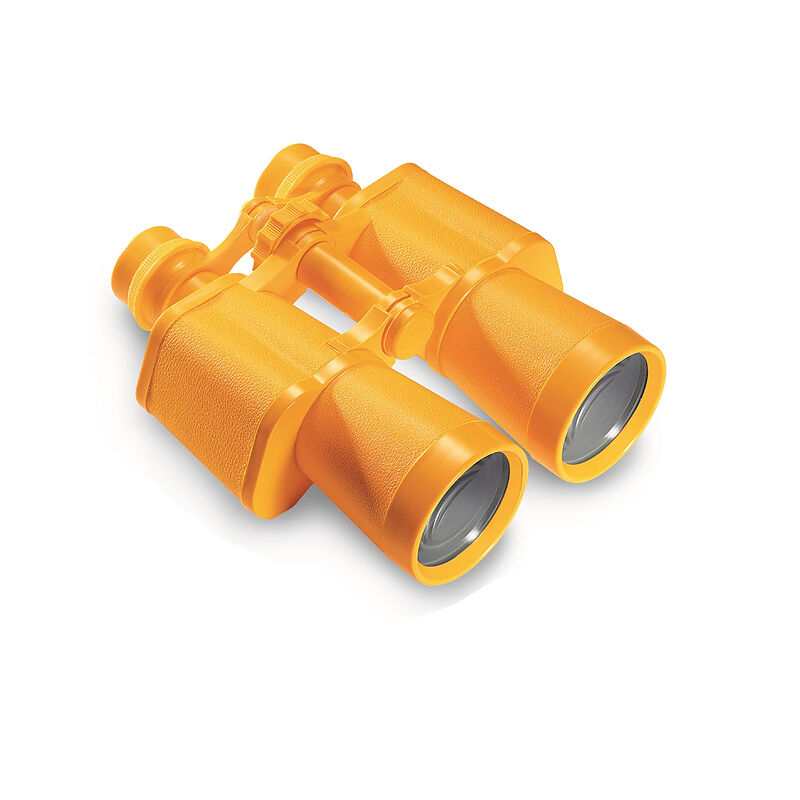 Fernglas aus ABS Kunststoff mit Umhängeband und Aufbewahrungsbehälter. Technische Daten: Objektivdurchmesser 45 mm, 4 optische Elemente, 4-fache Vergrösserung, Fokus und Augenabstand regulierbar. Farbe gelb. Masse: 16.5 x 18 x 7 cm.