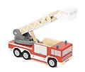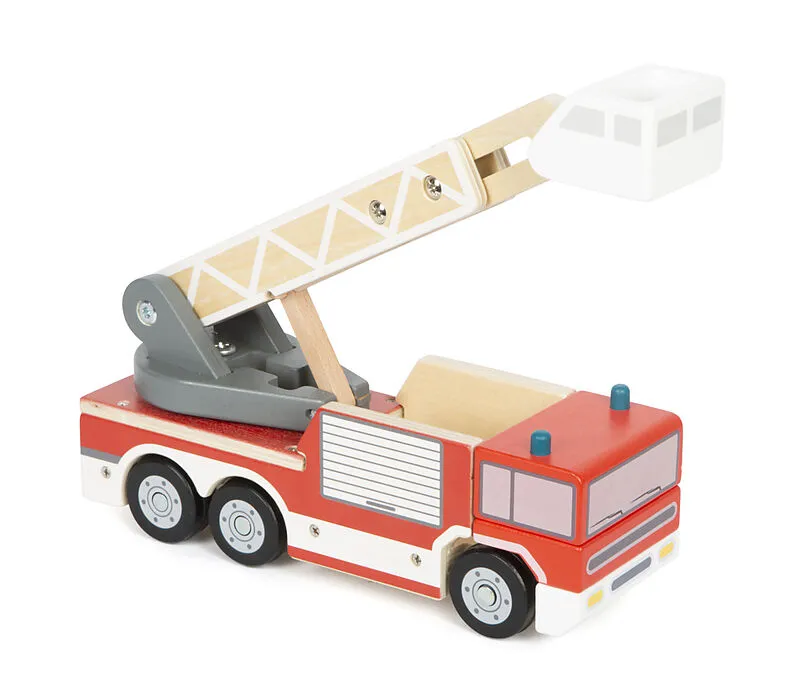 Dieses Feuerwehrauto aus Holz ist das ideale Fahrzeug für kleine Feuerwehrleute im Einsatz. Mit seiner 360-drehbaren sowie schwenk- und ausziehbaren Leiter ermöglicht es das klassische Einsatzfahrzeug, Brände in luftiger Höhe mühelos zu erreichen und zu lösche...