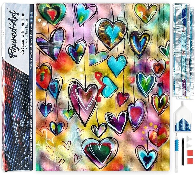 Diamond Painting Set - Herzen - 5D-Bild, Leinwand mit eckigen Steinen Dieses wunderschöne Diamond-Painting-Set enthält alles, was Sie benötigen, um Ihr Kunstwerk zu erstellen: - Leinwand (gerollt) in 40x50cm, die mit dem zu gestaltenden Motiv bedruckt und mit ...