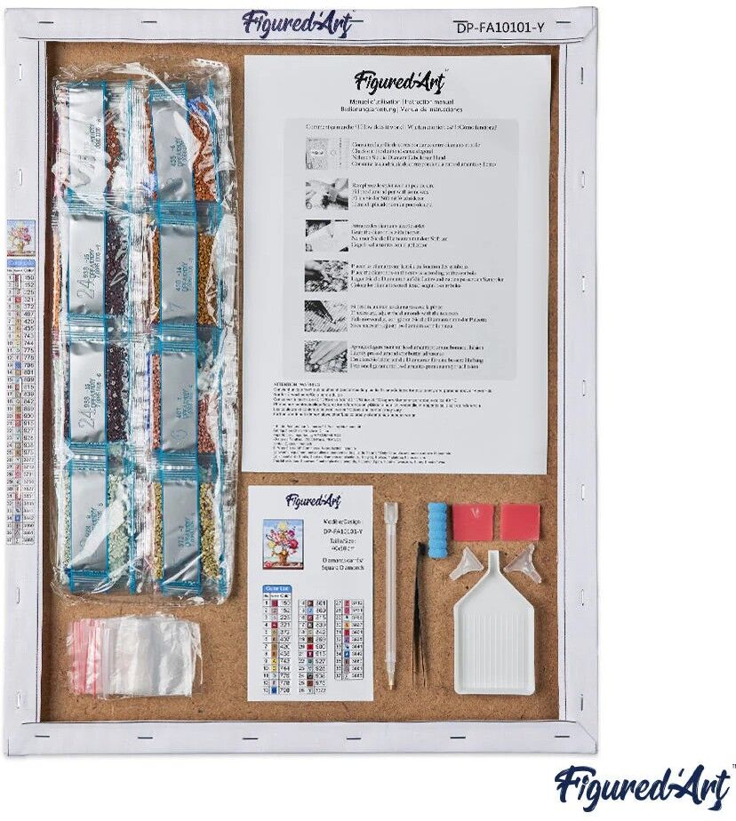 Komplettes Diamond Painting Set mit Keilrahmen und bereits gespannter Leinwand. Dieses Diamond Painting Set enthält alles notwendige um Ihr Kunstwerk zu verwirklichen. - 1 Nummerierte, selbstklebende Leinwand (40x50cm) - Alle benötigten Steine (eckig) - 1 Aufn...