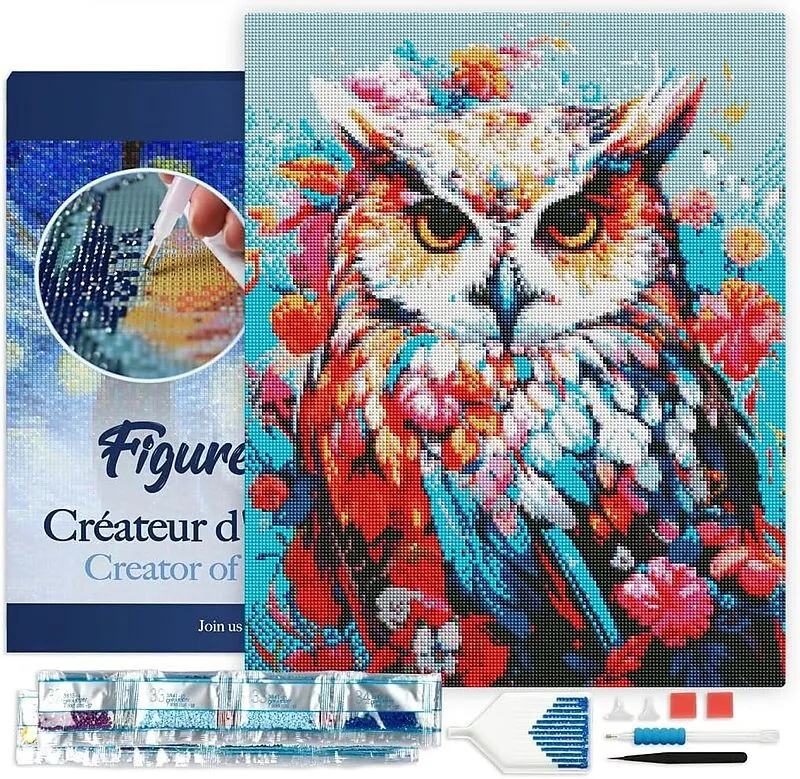 Diamond Painting 40x50 auf Keilrahmen gespannt FiguredArt Bunte Eule in voller Blüte - Größen: 40 x 50 cm - Steine: Eckig Dieses Diamond Painting Set enthält alles notwendige um Ihr Kunstwerk zu verwirklichen. - Eine schöne Leinwand mit dem Motiv bedruckt, das...