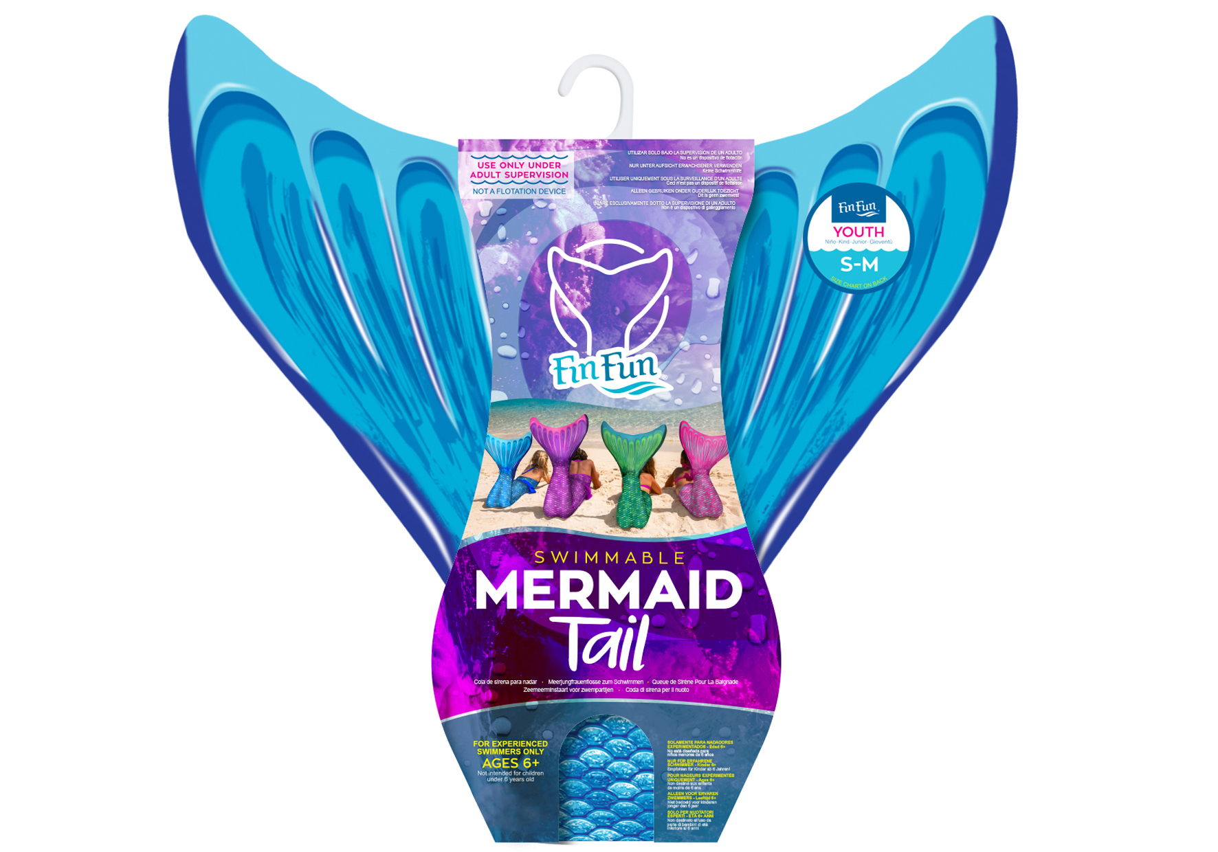 Fin Fun Meerjungfrau Mermaidens Blau S/M Fin Fun Mermaidens''-Ausstattung Empfohlen für Kinder ab 6 Jahren, die geübte Schwimmer sind. US-Design. Fischschwanz-Trikot aus pflegeleichtem elastischem Material, maschinenwaschbar, mit hoher Widerstandskraft gegen A...