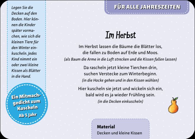 Bildkarten zum Spielen und Lernen für Kids - Tolle Fingerspiele für die Kleinsten. Die 40 Karten enthalten Fingerspiele, Klopf- und Trommelspiele, Schaukelreime, Mitspielgedichte, Streichelverse und Kniereiter speziell für Kinder im Alter von 0 - 3 Jahren. Fin...