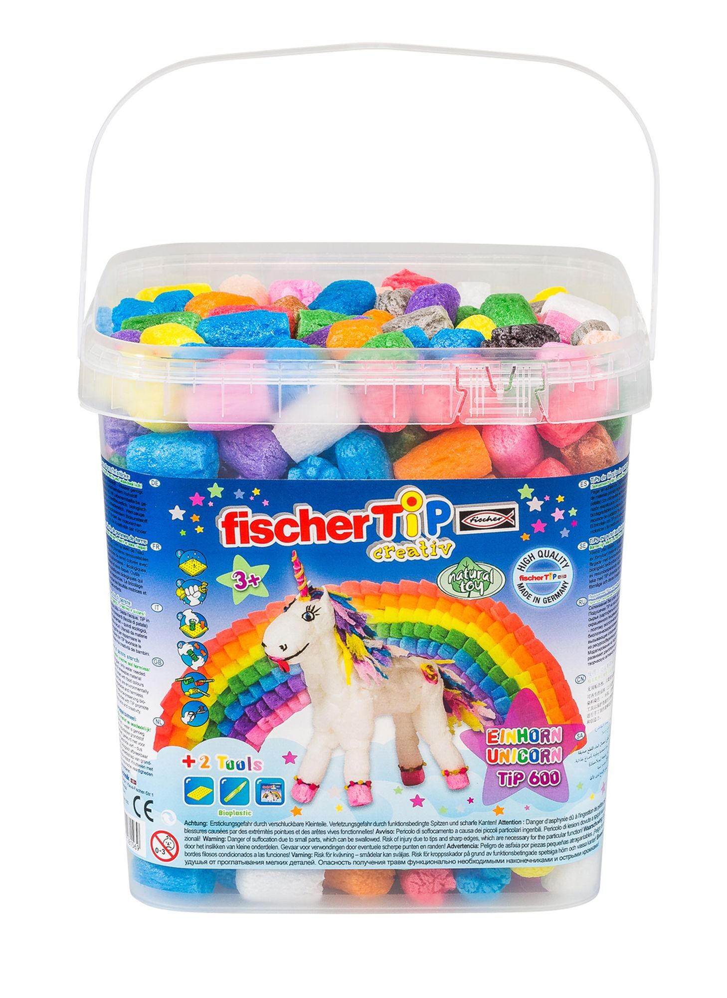 Fischer TiP ist ein Bastelmaterial für Kinder ab 3 Jahre. Die TiPs, aus Kartoffelstärke, sind mit Lebensmittelfarben eingefärbt und kleben einmal kurz mit Wasser angefeuchtet von selbst. Die Werkzeuge aus Biokunstoff helfen beim Kleben, Schneiden und Bauen. Fl...