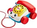 Lustiges Telefon, das beim Nachziehen mit den Augen rollt und ''plappert. Klingelt beim Drehen der Scheibe.