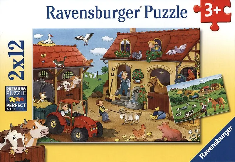 Ravensburger Kinderpuzzle - 07560 Fleißig auf dem Bauernhof - Puzzle für Kinder ab 3 Jahren, mit 2x12 Teilen Egal ob Pferd oder Kätzchen, Bagger oder Feuerwehrauto - die farbenfrohen Motive der Ravensburger Puzzlesets 12 Teile begeistern Mädchen und Jungen ab ...