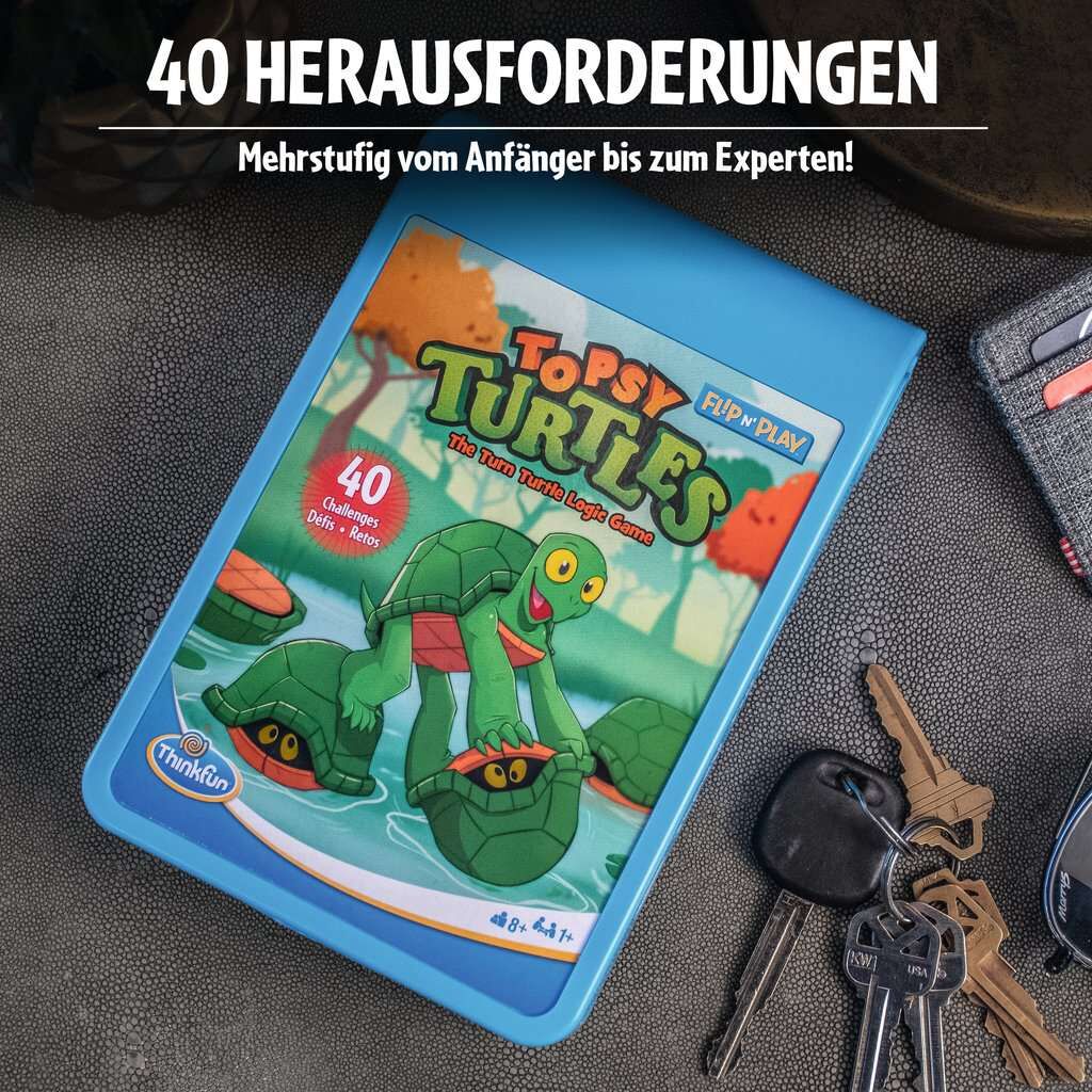 Bei Topsy Turtles liegen deine Schildkrötenfreunde hilflos auf dem Rücken und deine Aufgabe ist es, sie wieder auf die Beine zu bringen! Perfekt für unterwegs: Du musst nur die Box aufklappen und schon kann es losgehen. Mit 40 Herausforderungen für unterwegs m...