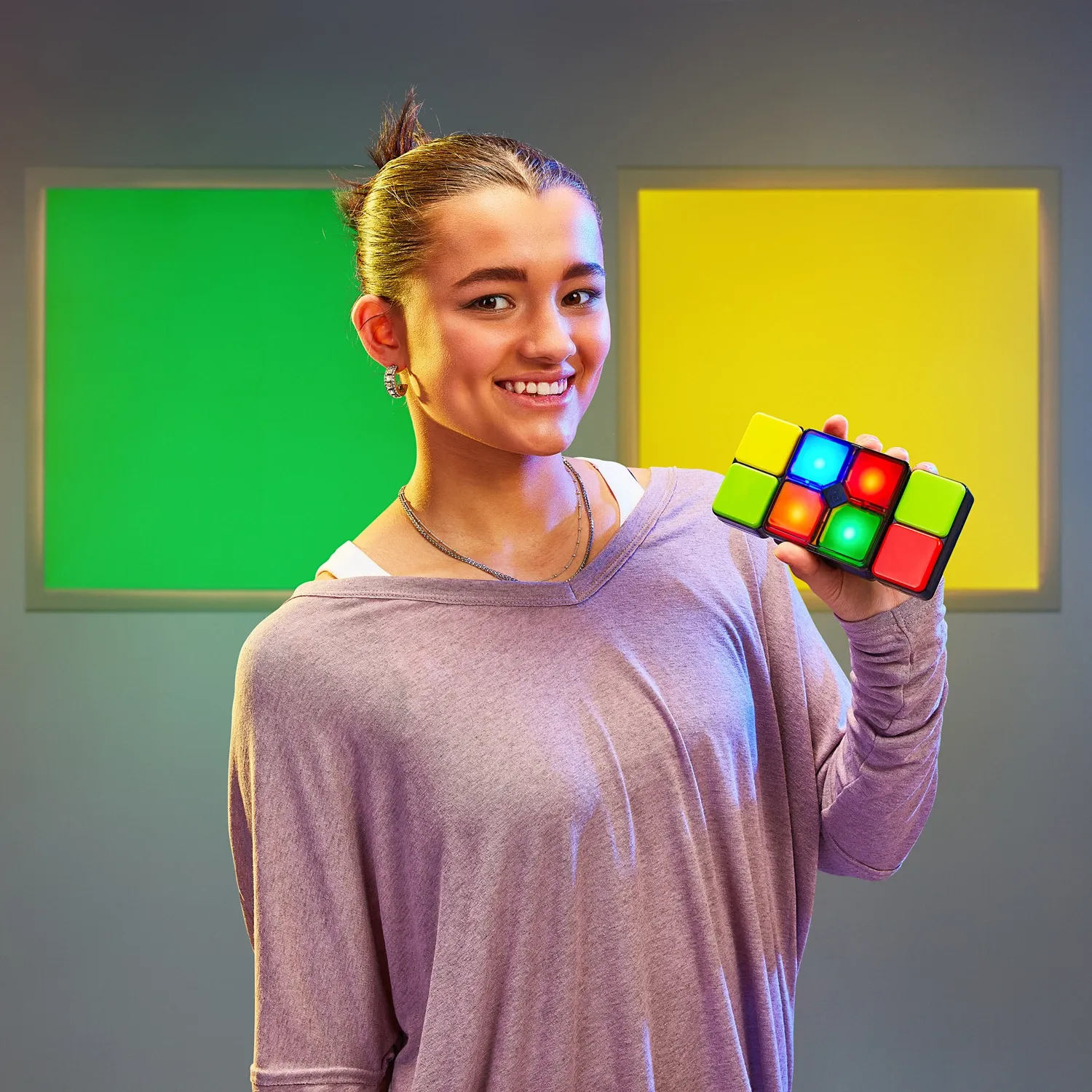 Moose Toys FLIPSLIDE (GERMAN) Schaffst du es, die Blöcke zu besiegen? Drehe die Böcke, finde die richtigen Farben und verschiebe sie, bis die Lichter übereinstimmen. 4 verschiedene Spielmodi: Geschwindigkeitsmodus, Level-Modus, Memory-Modus und Mehrspieler-Mod...