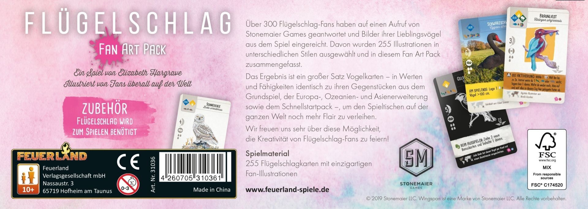 Hinweis: Nur mit dem Grundspiel spielbar: Dieses Fan Art Pack ist eine Erweiterung und setzt das Flügelschlag-Grundspiel voraus. 255 Vogelkarten aus dem Grundspiel Flügelschlag und allen bisher erschienen Erweiterungen wurden von Fans des Spiels im Rahmen eine...