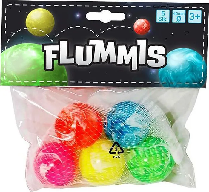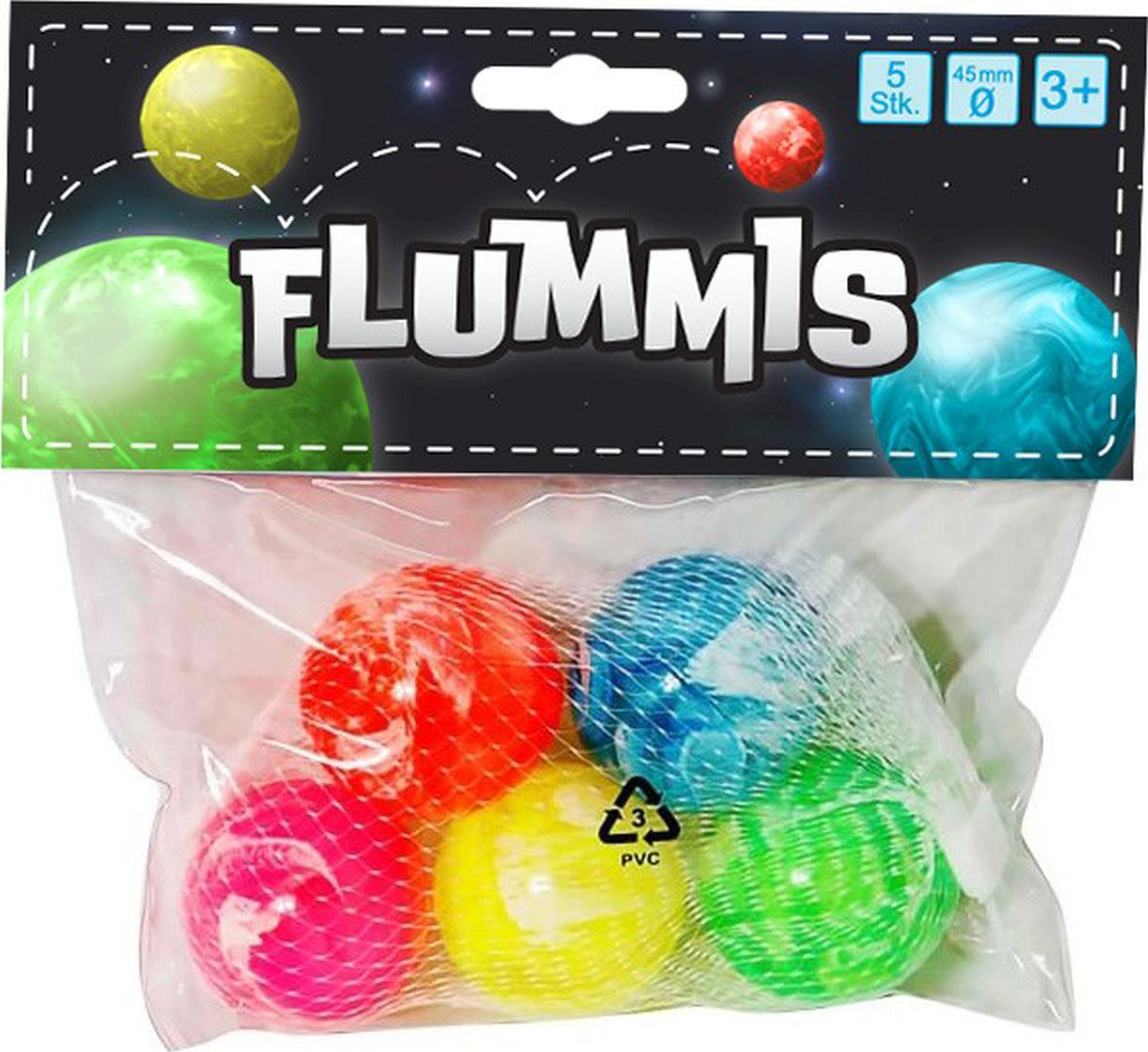 Flummis 5 Stück im Beutel in verschiedenen Farben. Durchmesser eines Flummis ist 45 mm. Für Kinder ab 3 Jahren.