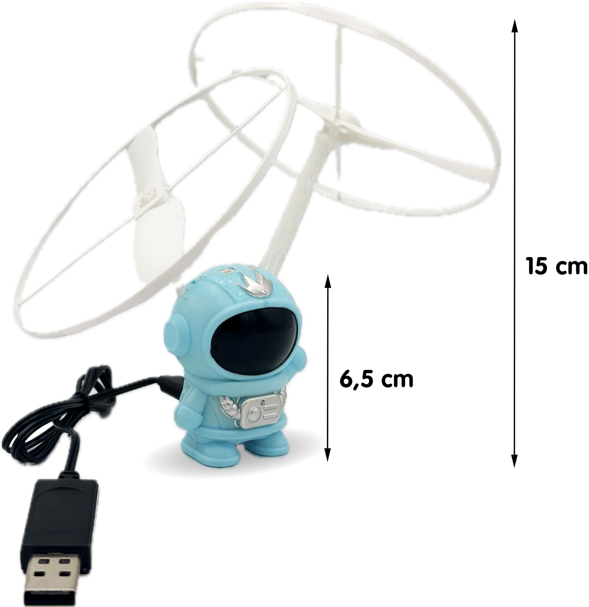 Kleiner Astronaut mit LED-Licht, Infrarot Induktion und USB-Ladefunkton. Für Drinnen geeignet. Zahlreiche Tricks und Lichteffekte. In Geschenkbox: 15 x 12 x 5 cm. Ab 8 Jahre.