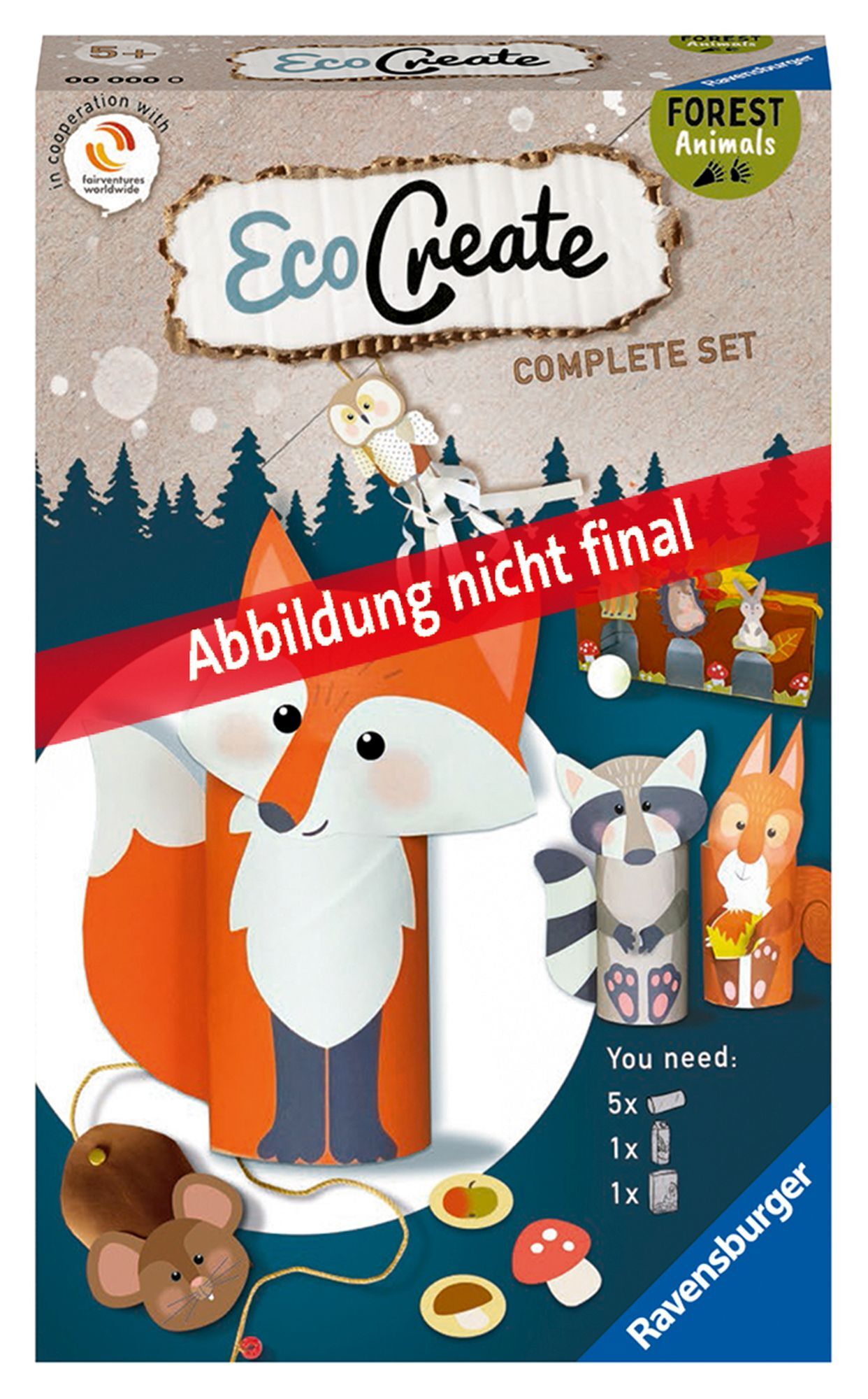 Im EcoCreate Bastelset #EcoCreate - Forest Animals# von Ravensburger ist alles enthalten, um aus nicht mehr benötigtem Material (z.B. leere Getränkekartons oder Toilettenpapierrollen) von zu Hause, tolle und einzigartige DIY Projekte zu basteln. Die gebastelte...