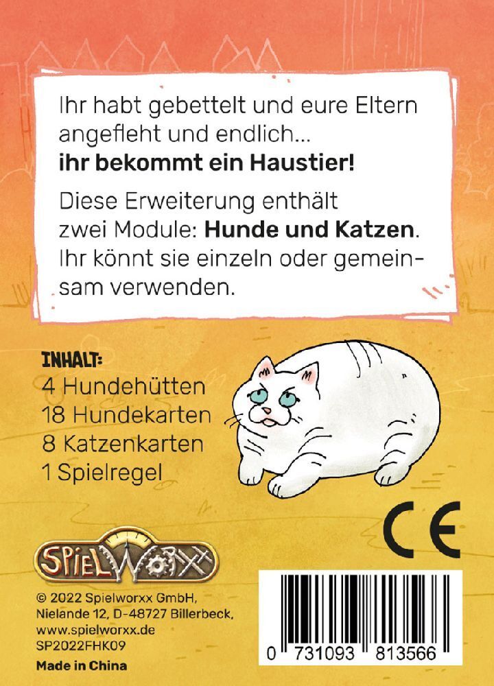 Diese Erweiterung fügt dem Deckbauspiel Fort zwei neue Module hinzu: Hunde und Katzen. Sie können einzeln oder in Kombination verwendet werden. Hunde verhalten sich treu und bleiben in der Regel bei ihrem Besitzer, während die wankelmütigen Katzen viel umherzi...