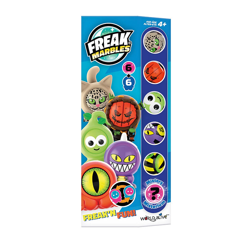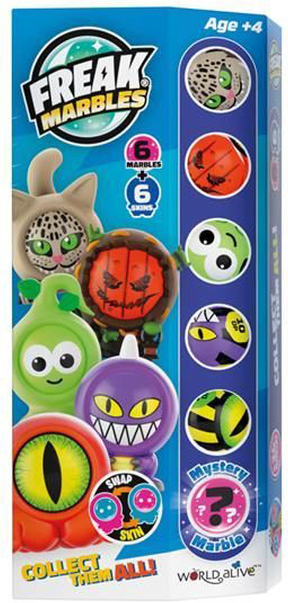 Marbles & Skins 6er Set - blau Die ultimativen Murmeln mit eigenem Charakter zum Sammeln, Mixen, Tauschen und Spielen für drinnen und draußen. Sammle sie alle! Jede Murmel hat seine individuellen Fähigkeiten und gehört in eine ''Freaky Family''. Die coolen und...