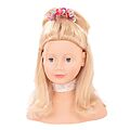 Götz Frisier- und Schminkkopf, 58tlg., mit Schminke und Haaraccessoires, blonde Haare, blaue, gemalte Augen. Haare: lauwarmes Wasser, mildes Babyshampoo waschbar, rutschfest durch Saugnäpfe.