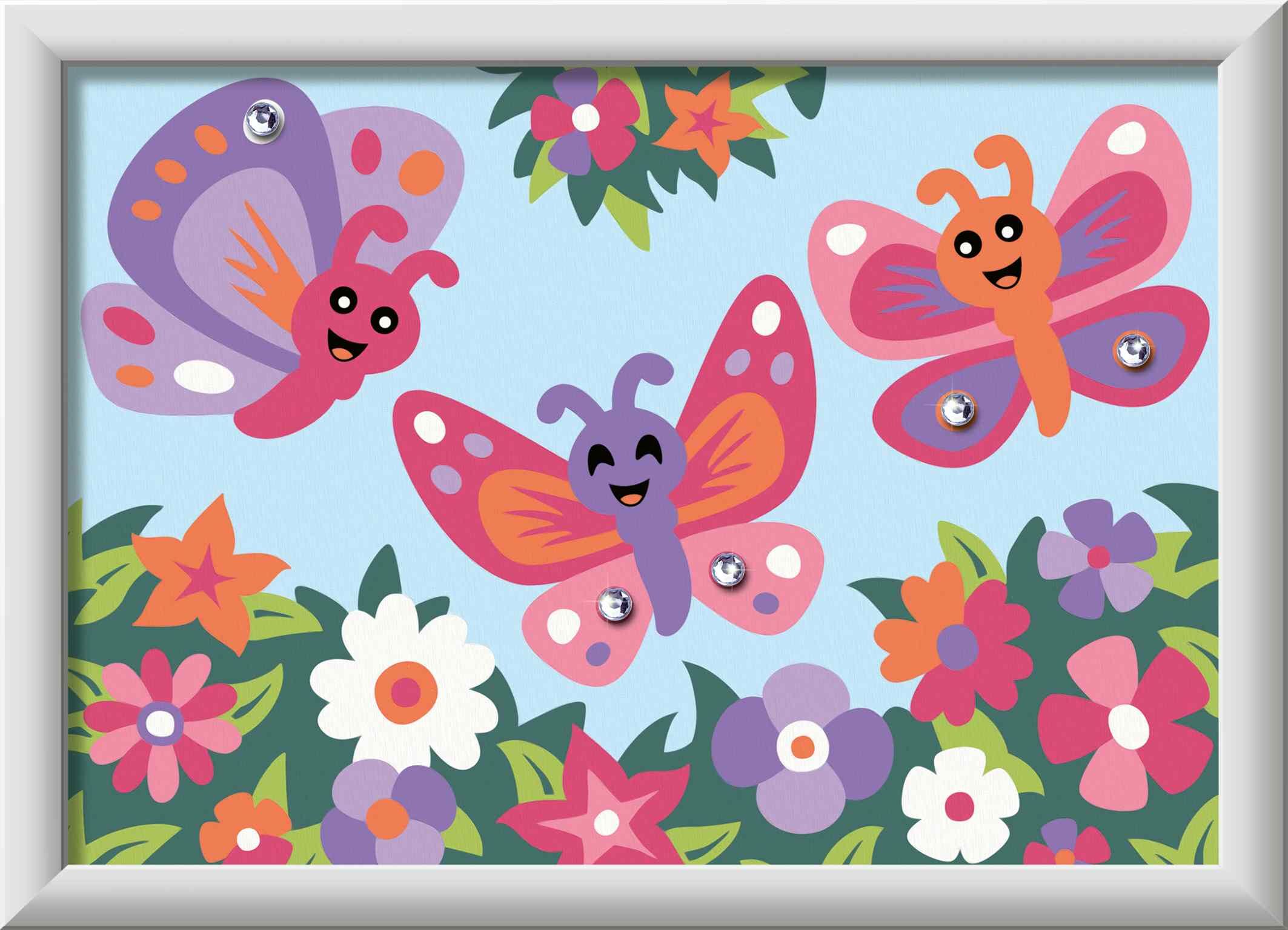 Farbige Motivlinien: Größerer Malspaß & ein schöneres Ergebnis!Dank der farbigen Motivlinien, können die Kinder das ganze Motiv Fröhliche Schmetterlinge und die Farben schneller erkennen. Der Pinsel hat eine gute Führung und so entsteht nach und nach ein perfe...