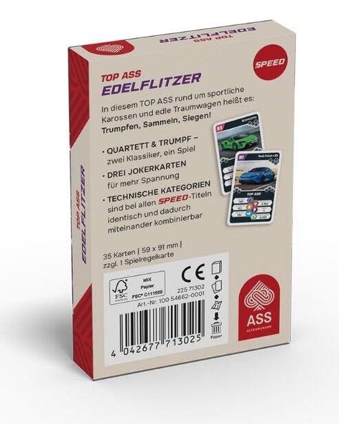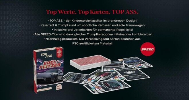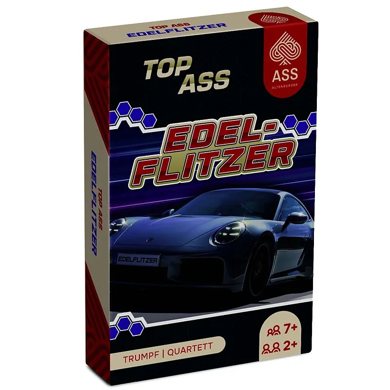 TOP ASS Traumwagen Quartett & Trumpfspiel Mit TOP ASS Traumwagen erlebst du gleich zwei Spieleklassiker in einem Set: Quartett und Trumpf. Tauche ein in die Welt sportlicher Karossen und edler Luxusautos und stelle deine Karten geschickt gegeneinander auf. Ve...