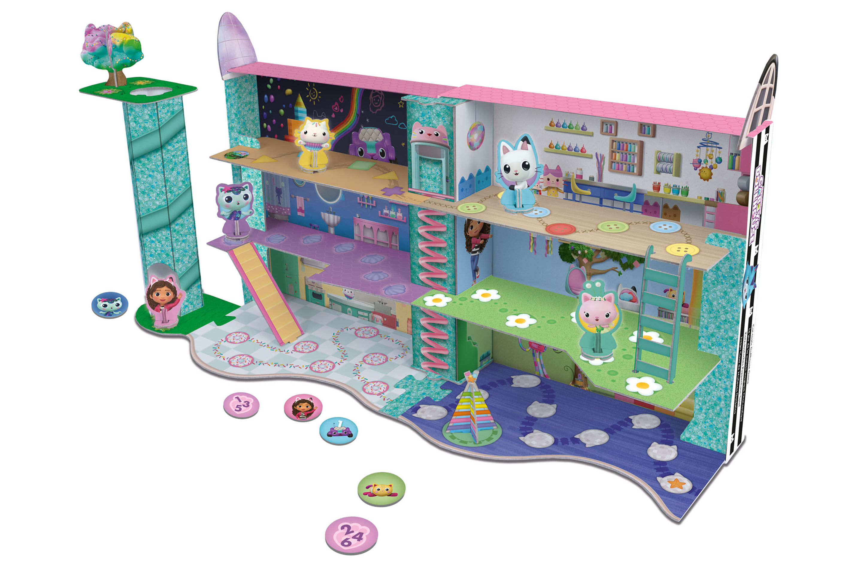 Willkommen zum katz-tastischen Puppenhaus-Spiel von Gabby´s Dollhouse! Mach dich bereit für ein spannendes Abenteuer voller Spaß - miau! Viel Spaß beim Basteln und Bauen deines eigenen Gabby-Puppenhauses! Mit vielen heraustrennbaren Teilen, entsteht in der Spi...