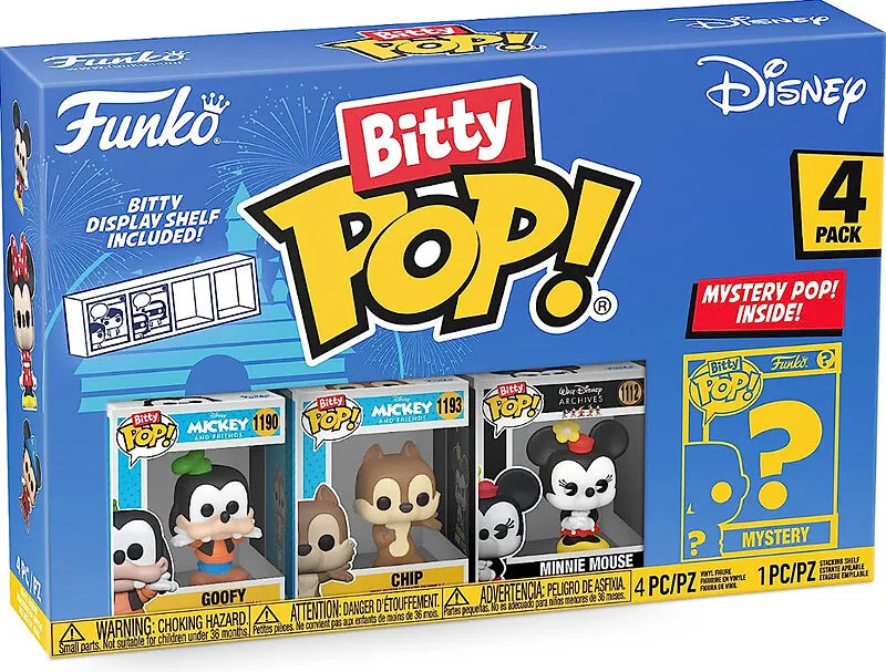 Disney Classic Bitty Pops! im 4er Pack. Bringt die beliebten, stilisierten Funko Pop!-Figuren auf ein mikroskopisch kleines Sammelniveau. Die Figuren sind gerade mal 2.2 cm klein. Jedes 4er Set wird mit einem durchsichtigen, stapelbaren Acrylkoffer geliefert, ...