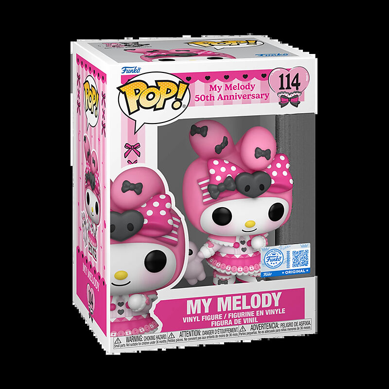 Versammle deine Hello Kitty und Freunde und mach dich bereit, das 50-jährige Jubiläum von My Melody zu feiern! Diese exklusive POP! My Melody trägt ein elegantes rosa Ensemble und ist bereit, in deiner Sanrio-Sammlung mitzufeiern. My Melody ist bereit, sich de...