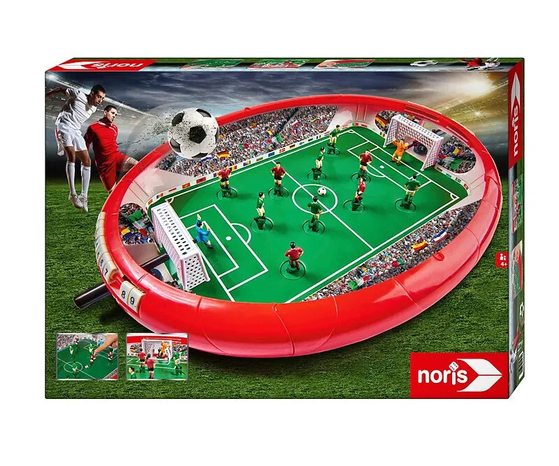 In der Fußball Arena können 2 Spieler mit je 6 Spielfiguren gegeneinander antreten. Die Feldspieler sind mit einer Feder am Boden befestigt. Durch das Spannen der Figur in die richtige Richtung und mit der passenden Stärke, kann derBall gepasst oder direkt auf...