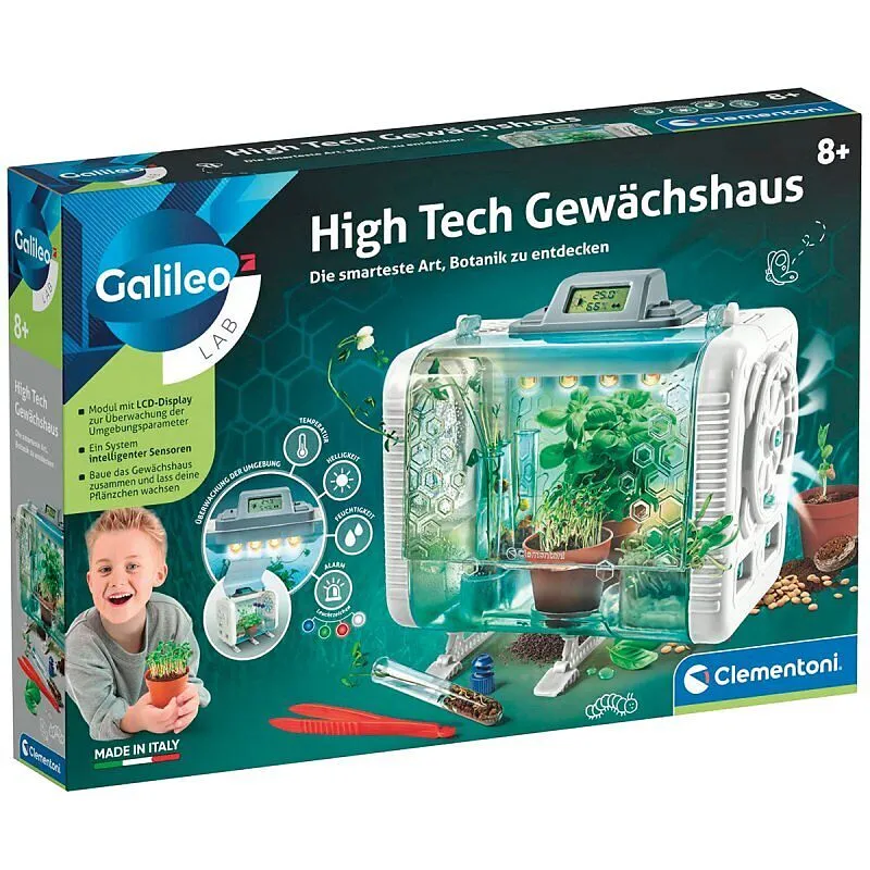 Galileo High Tech Gewächshaus Es ist mehr als nur ein Gewächshaus... es ist ein spielerisches Erlebnis, um mit der Botanik der Zukunft zu experimentieren! Mit einem speziellen Design, um den ''grünen Daumen'' zu trainieren! Dank der im Modul enthaltenen Sensor...