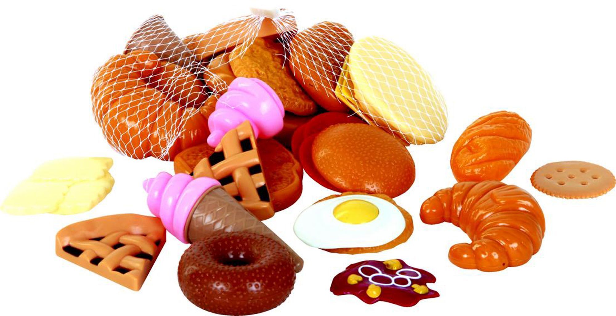Diese Auswahl an Gebäck ist genauso liebevoll gestaltet wie das Original und eine ideale Ergänzung für die Spielküche. Der Netzsack enthält 24 Stück Gebäck wie z.B. Toastbrot, Gipfeli, Zopf, Brötchen, Kekse, etc.
