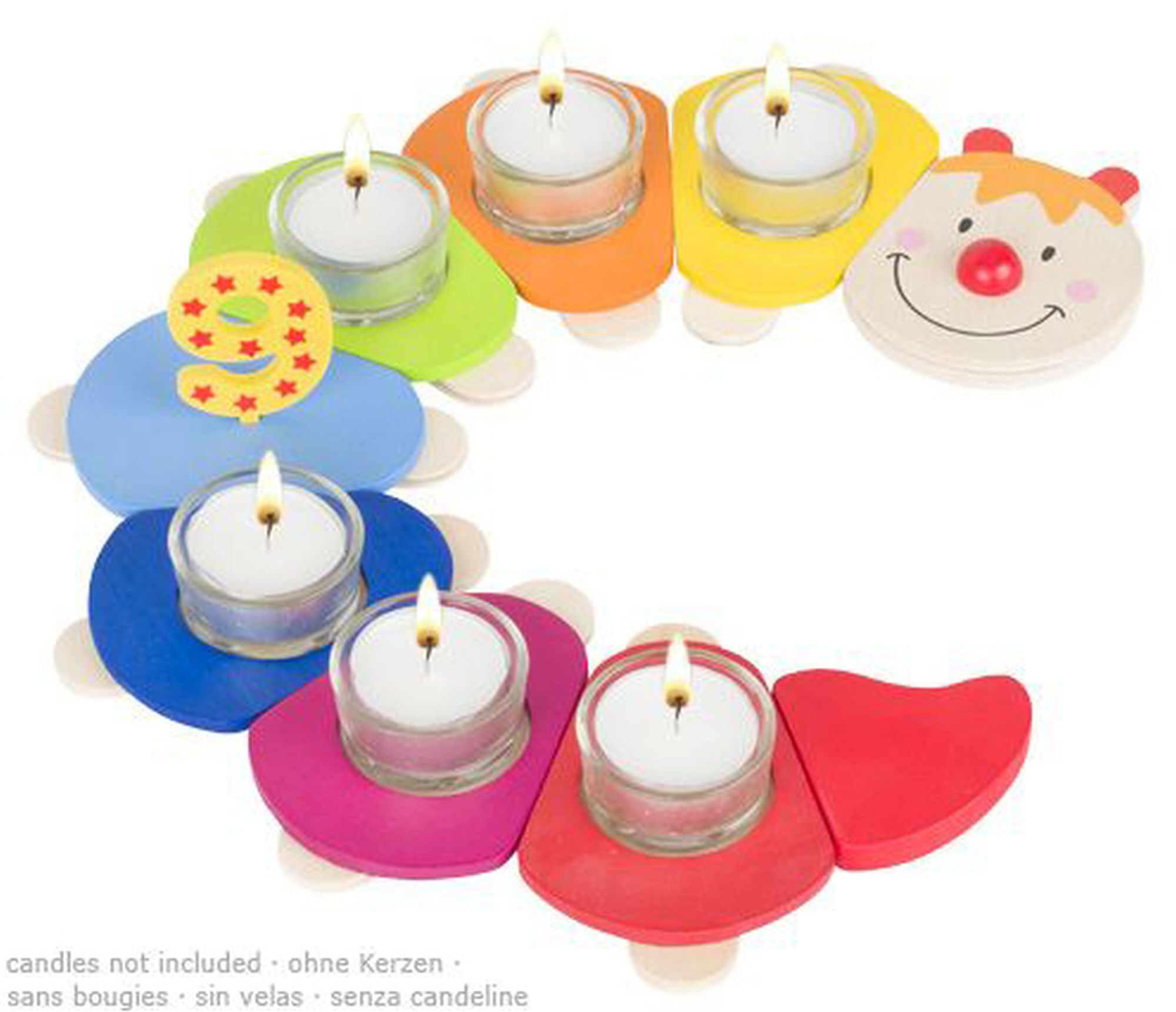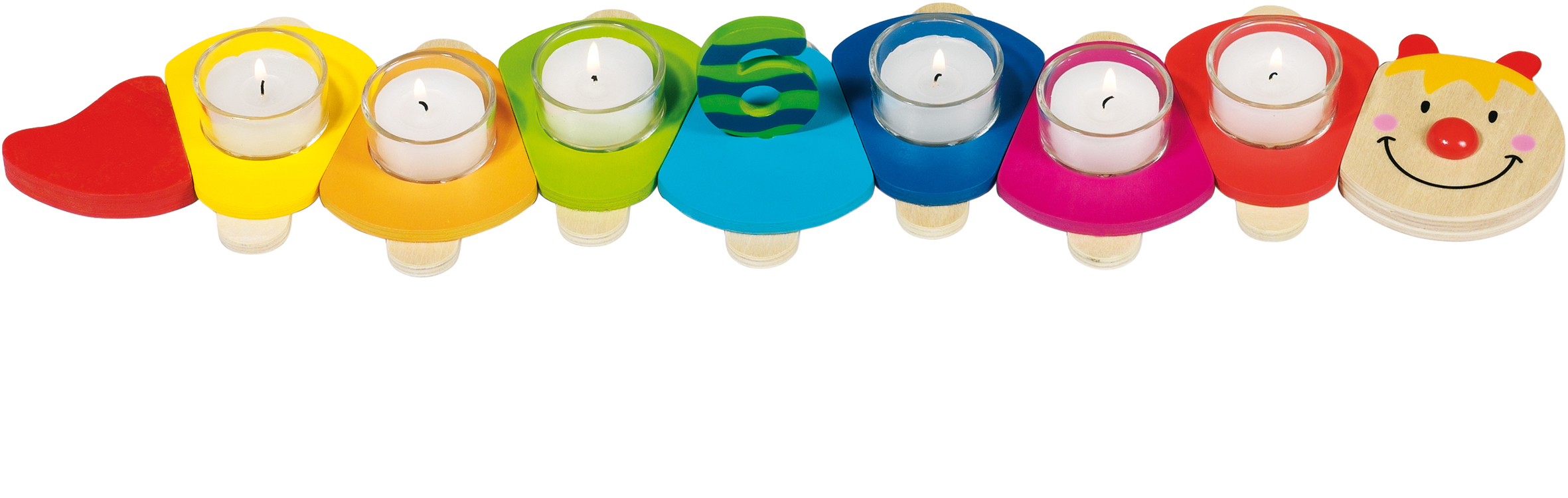Wie auch immer die Raupe zusammengelegt wird, sie macht eine gute Figur. Während die Zahlen von 1 bis 9 schon mit dabei sind, kann Camila noch zusätzlich mit Teelichtern dekoriert werden.