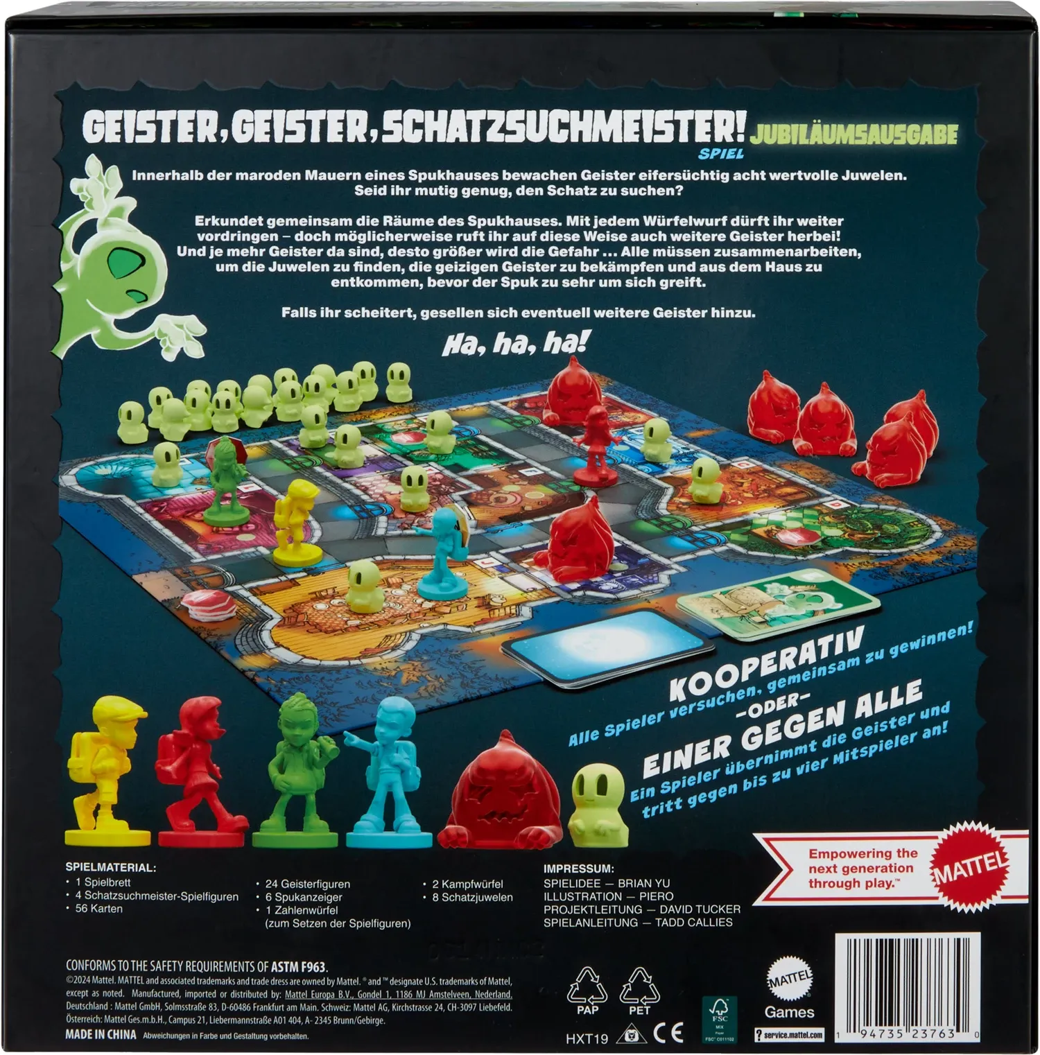 Geister, Geister, Schatzsuchmeister Der Spuk geht von vorn los in der Jubiläumsausgabe des Brettspiels Geister, Geister, Schatzsuchmeister!. Der Gewinner der begehrten Auszeichnung Kinderspiel des Jahres 2014 kehrt mit zwei verschiedenen Spielmöglichkeiten zur...