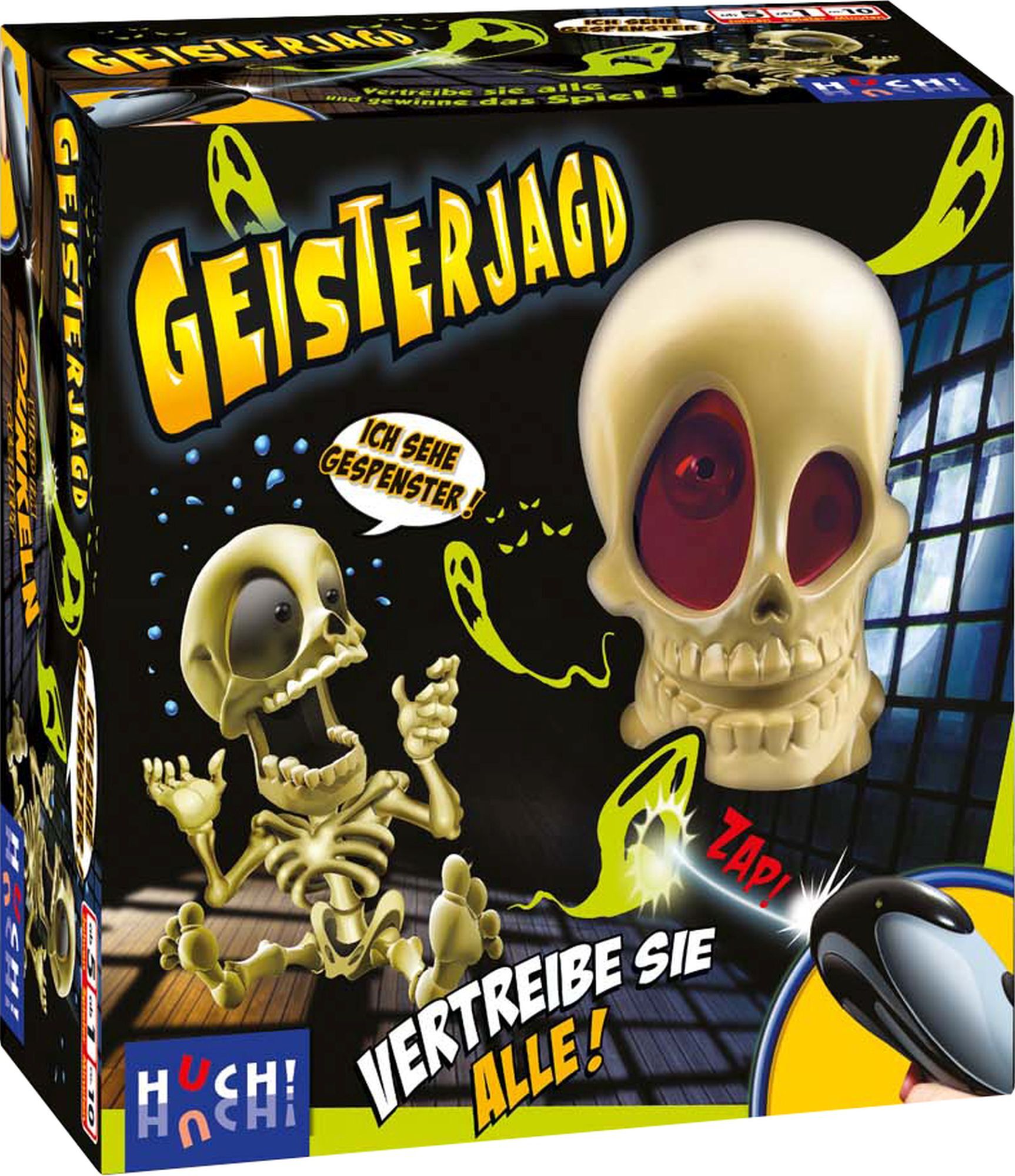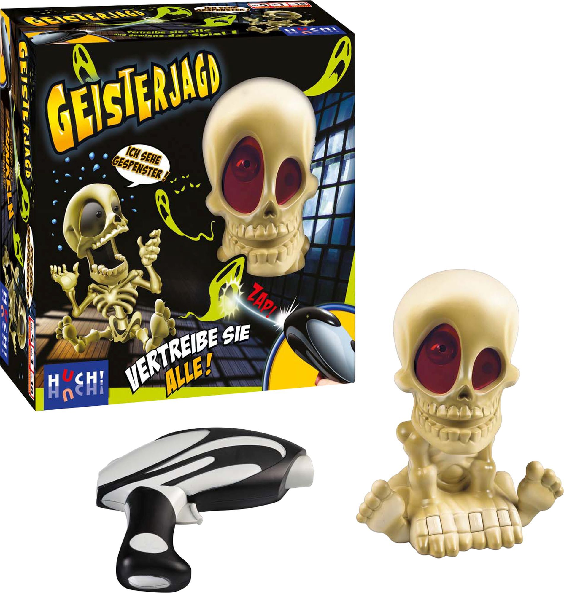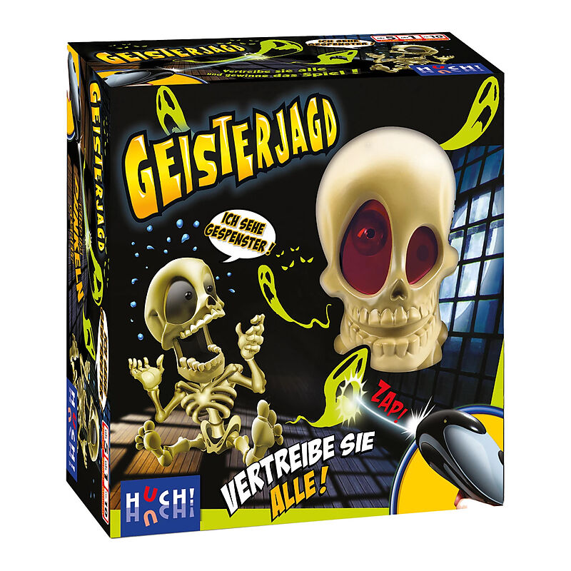 Geisterjagd Licht aus und Action! Bei der Geisterjagd bewegt der gruselige Johnny Skeletti seinen Kopf in alle Richtungen. Dabei projiziert er für einen kurzen Augenblick schaurige Geister an die Wand. Wer schafft es, möglichst viele Gespenster mit der Lichtpi...