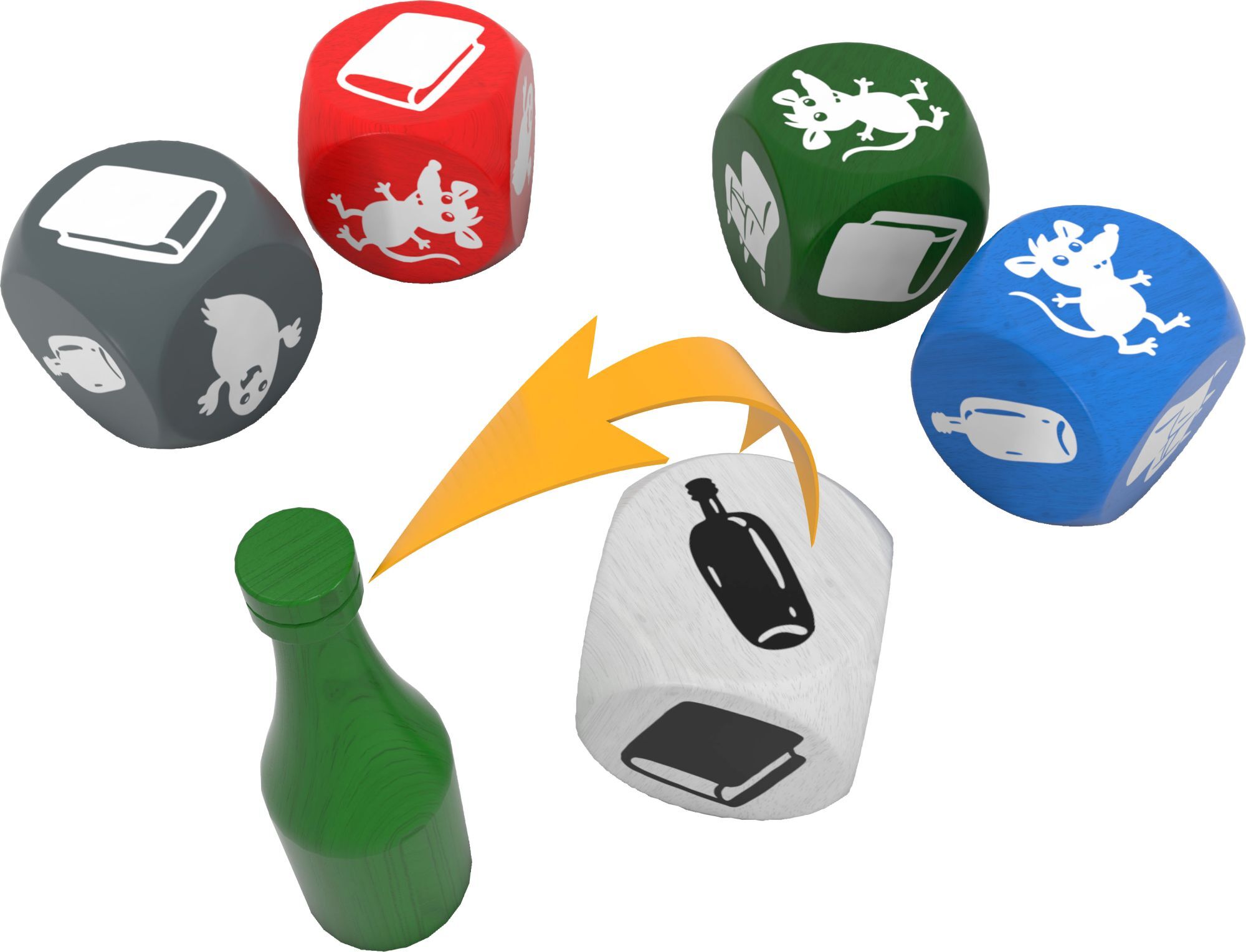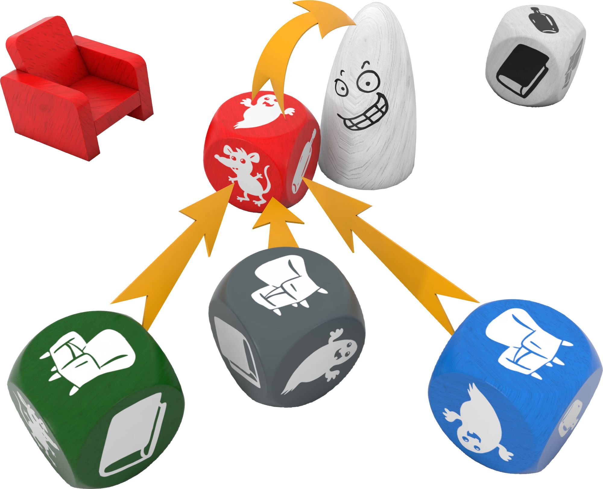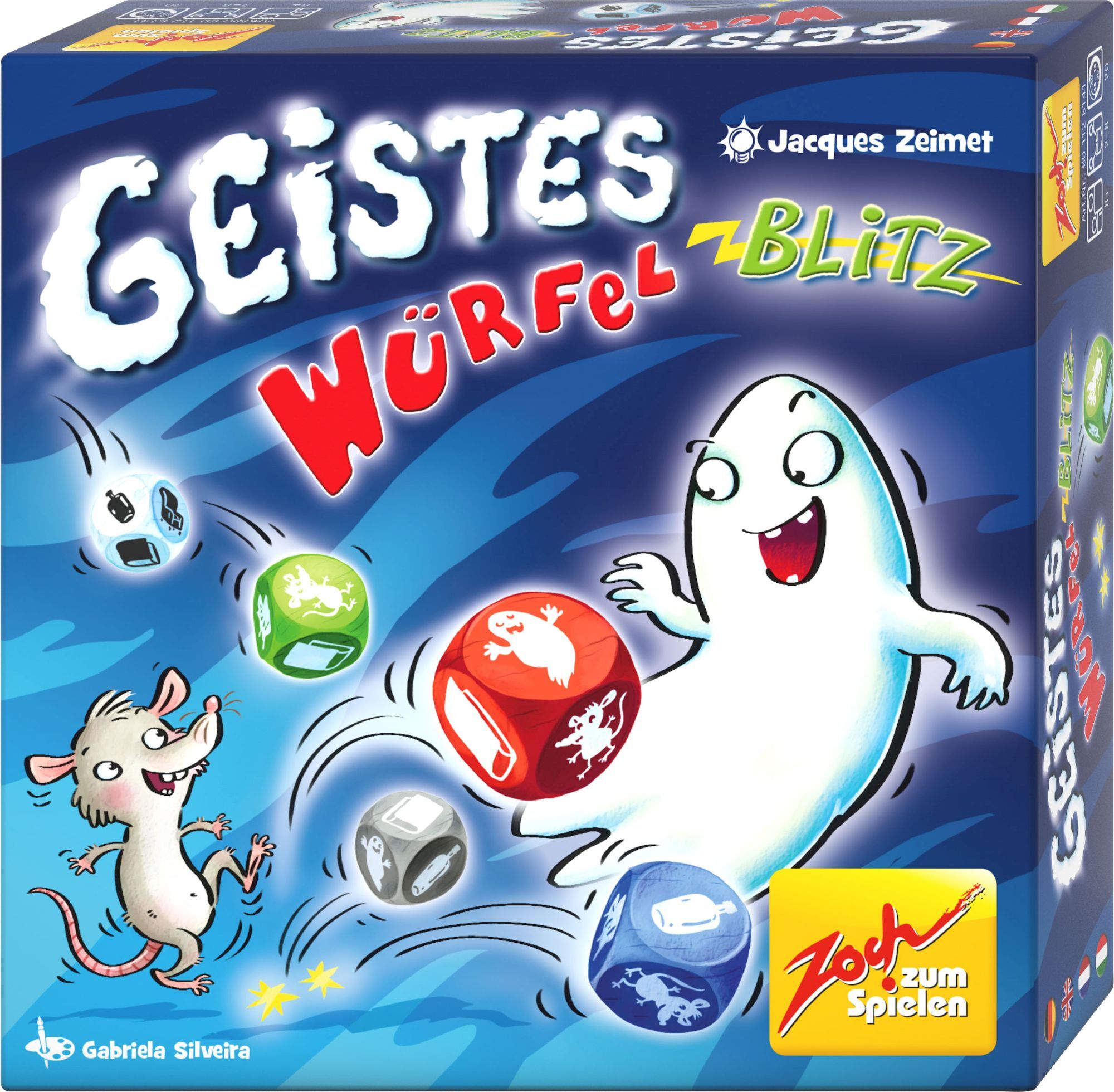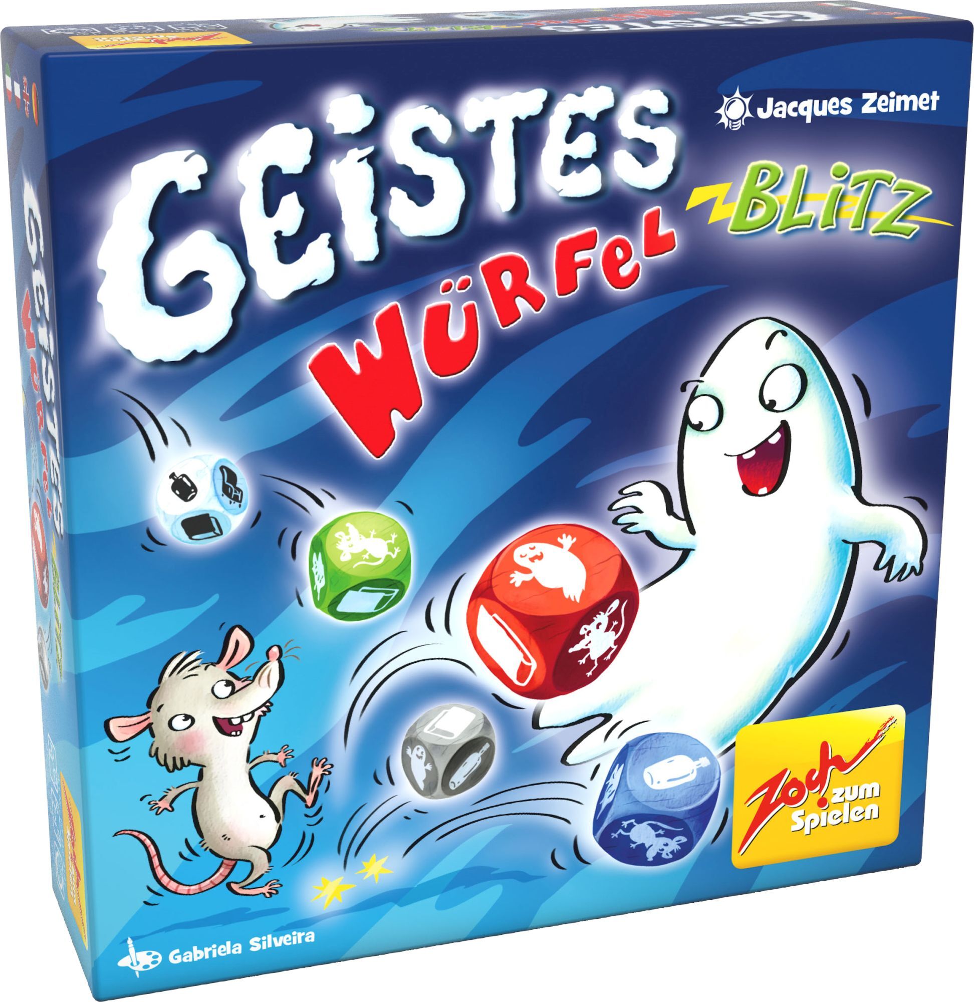 Fünf farbige Würfel zeigen, welcher der fünf farbigen Gegenstände geschnappt werden soll. In Geistesblitz-Manier kommt es darauf an, welche Farben und Formen dabei (nicht) zu sehen sind. Würfelspiel - Geistesblitz ist ein geistreiches Reaktionsspiel, bei dem s...