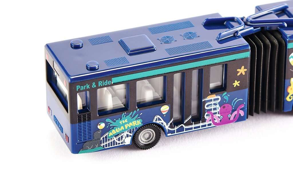 Gelenkbus in robuster Metallausführung. Mit vielen originalgetreuen Spielfunktionen. Maße (L/H/B) in mm: 160/34/28.Farbe kann von der Abbildung abweichen.