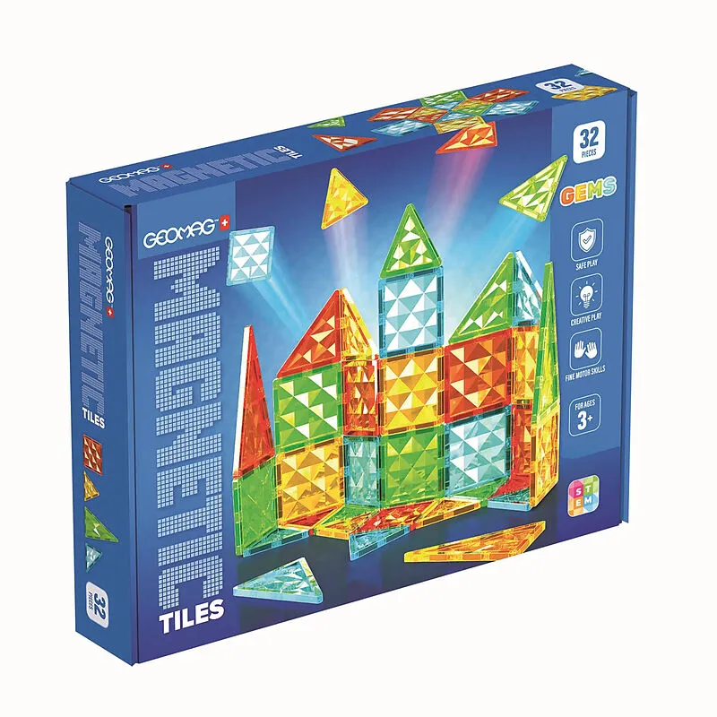 DIE FUNKELNDEN KACHELN FÜR MAGISCHE 3D-KONSTRUKTIONEN! Die brandneuen magnetischen Kacheln von Geomag beeindrucken durch ihre farbenfrohe Oberflächenstruktur lichtdurchströmt funkeln sie wie echte Juwelen Geomag Magnetic Tiles Gems eignen sich für die Konstruk...