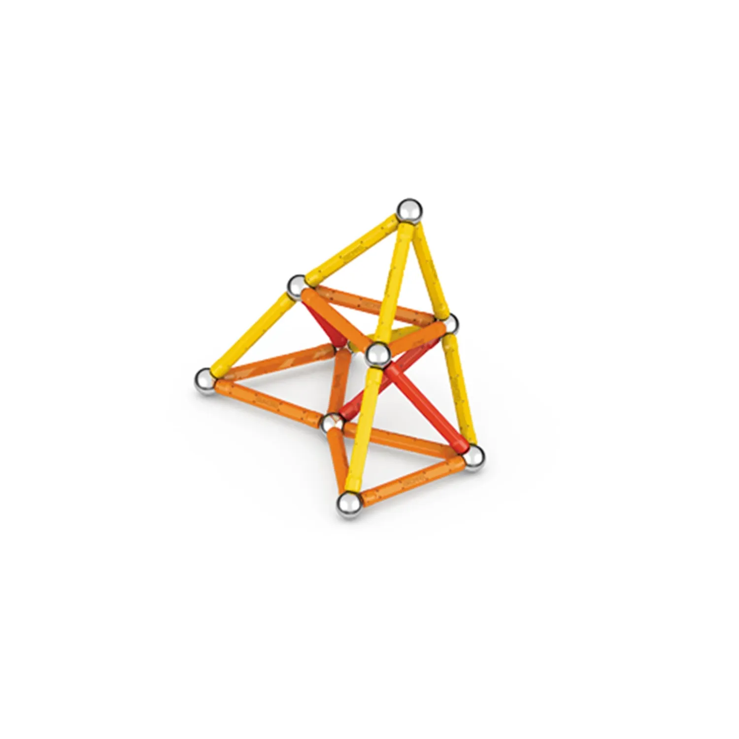 42-teiliger Magnetbaukasten. Magnetstäbe, Panels und Sockelelemente bestehen aus 100 % Recyclingkunststoff