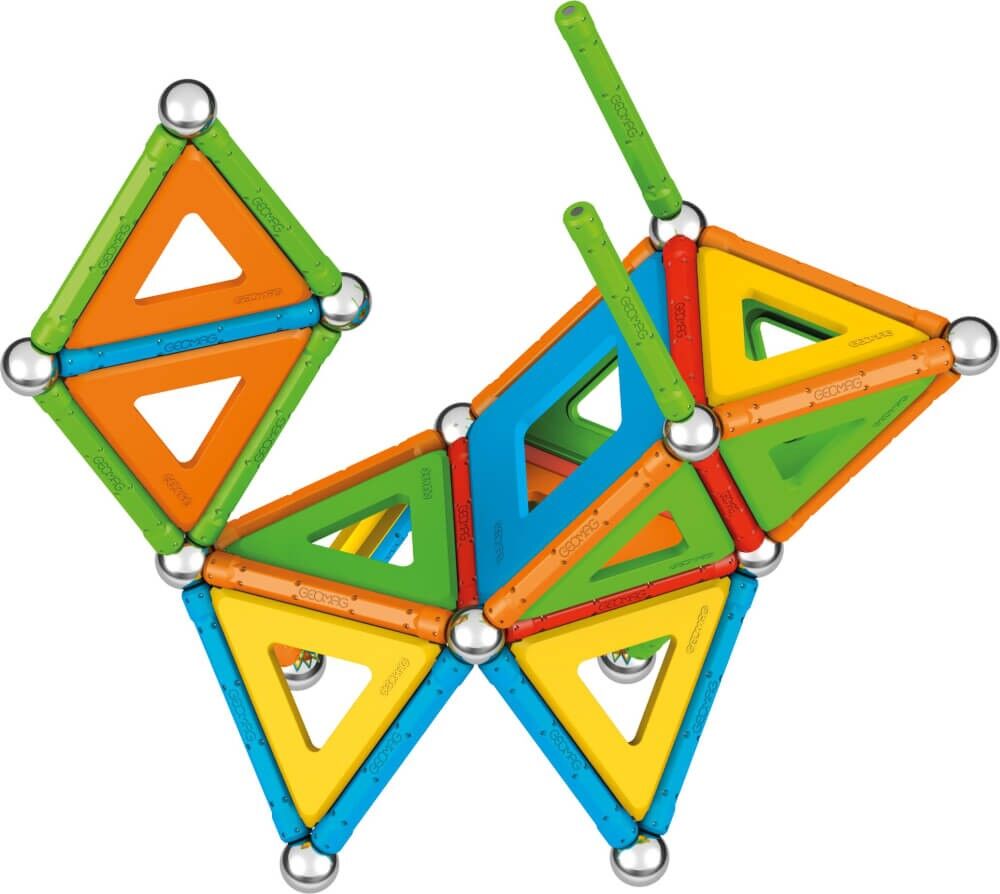 Geomag Supercolor Panels Recycled 78 pcs Das 78-teilige Supercolor-Set besteht aus 20 Kugeln, 28 Magnetstäben und 16 dreieckigen, 12 quadratischen und 2 fünfeckigen Tafeln. Die Stäbe sind durch die an beiden Enden angebrachten Magnete mit den Kugeln verbunden....