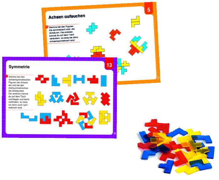 Legen, Spiegeln, Drehen, Messen Den charakteristisch geformten Plättchen in den fröhlichen Farben kann kein Kind widerstehen. Wie ein Puzzle fügen sich die Formen ineinander. Wer kann Muster ohne Lücken legen? Ein vielseitiges Geometrie-Material für die Grunds...