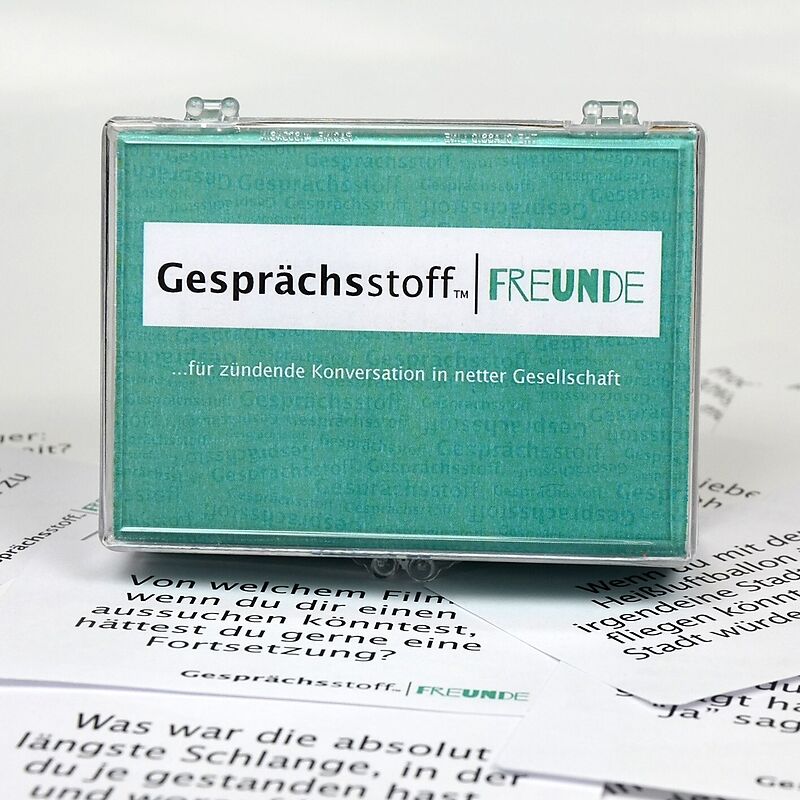 Gesprächsstoff Freunde ...für zündende Konversation in netter Gesellschaft Lerne deine Freunde besser kennen! Gesprächsstoff Freunde beinhaltet mehr als 100 Karten mit unerwarteten, lustigen, verrückten und interessanten Fragen für den ultimativen Abend unter ...