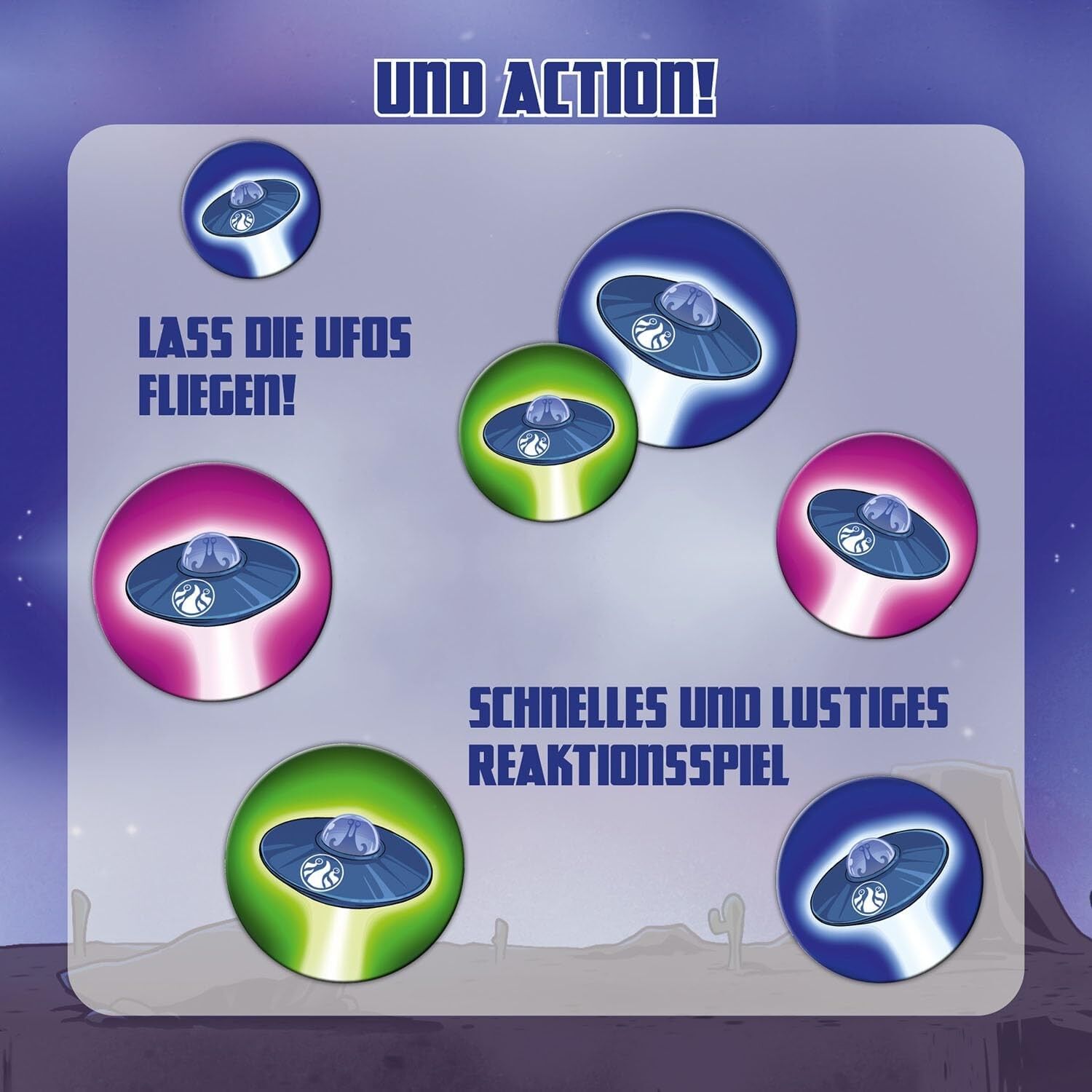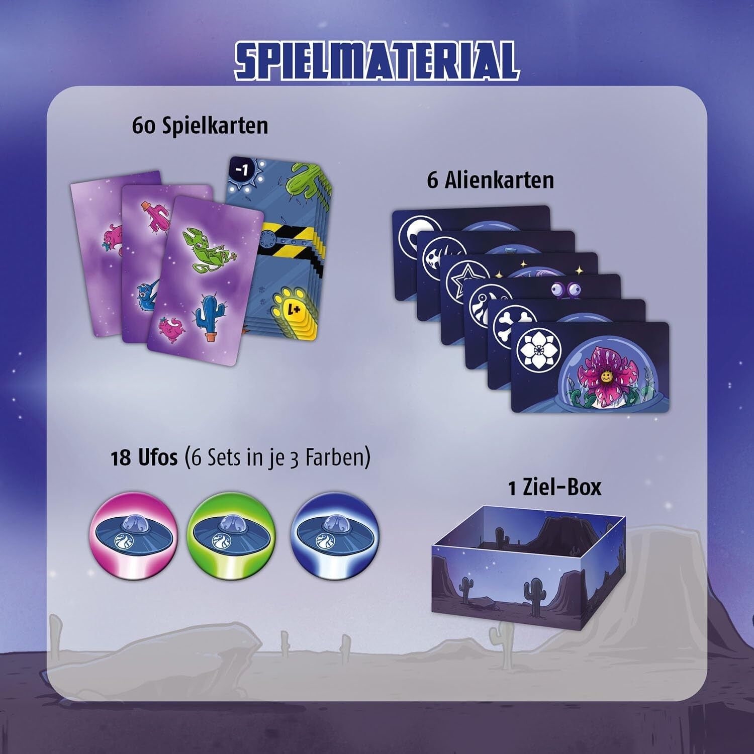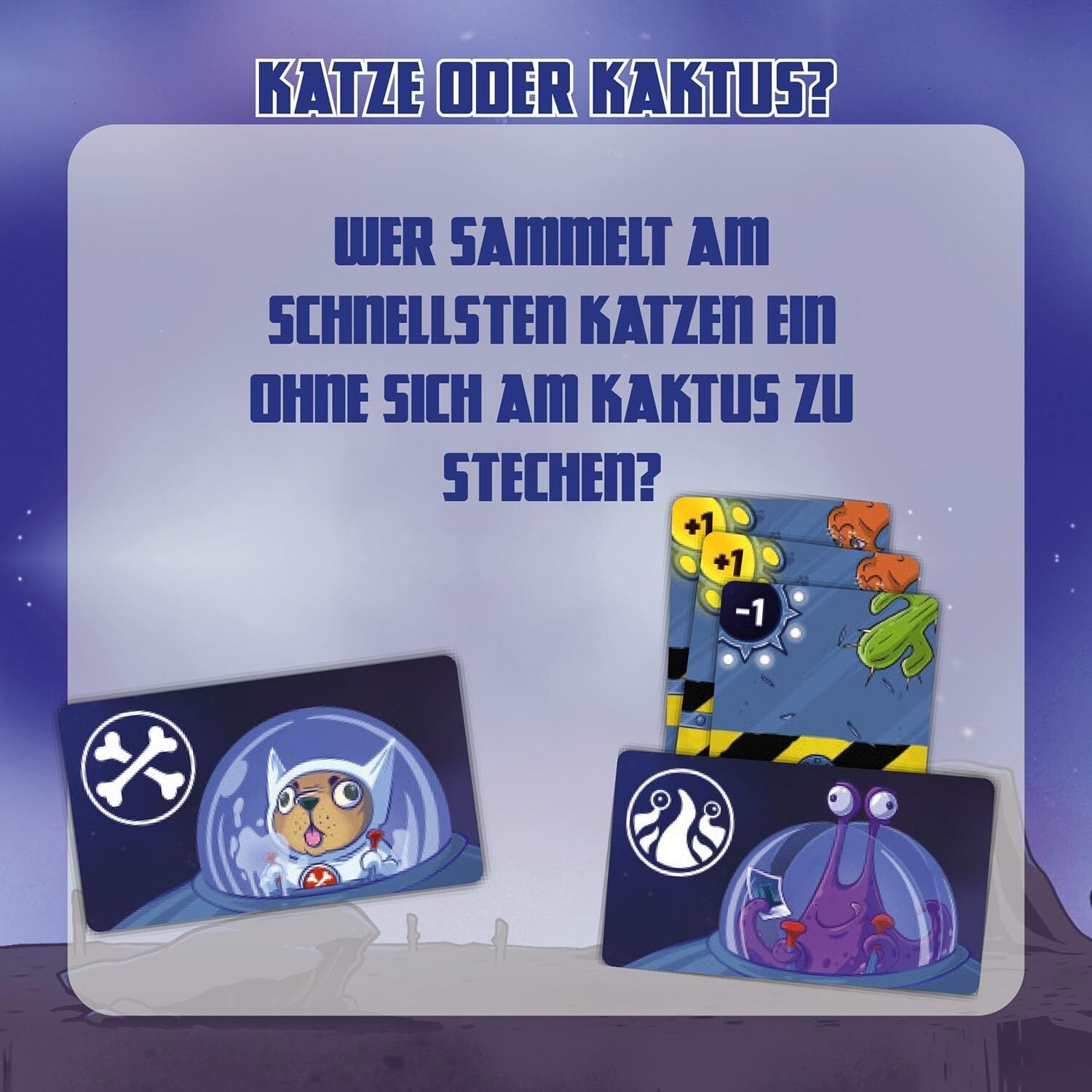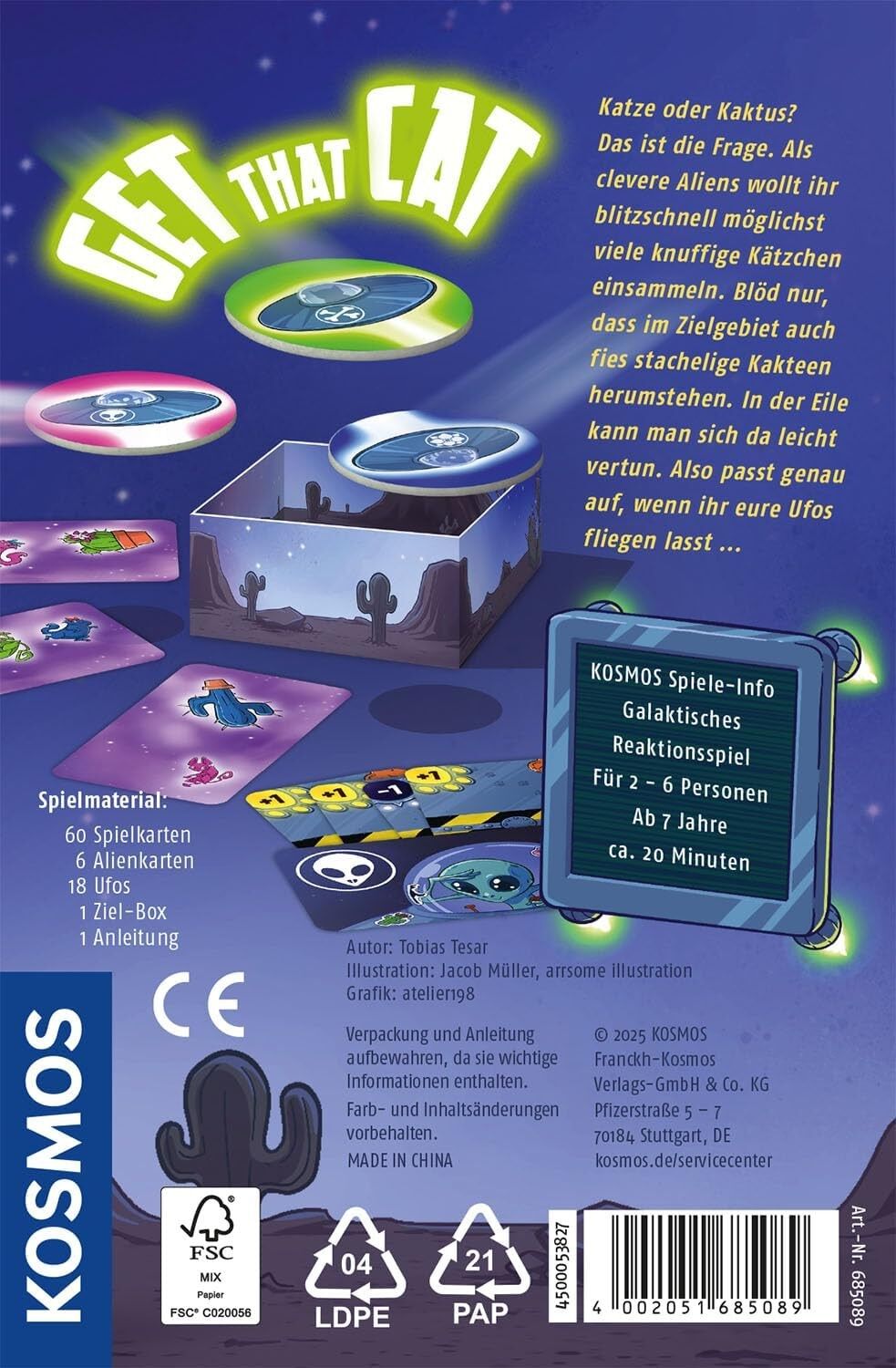 Schnelles Kartenspiel für die ganze Familie in der praktischen Magnetbox. - Clever: Die Schachtel wird zum Teil des Spielfelds! - Einfache Regeln für einen schnellen Einstieg ins Spiel. - Handkarten ausspielen und Ufos werfen, um Katzen zu sammeln. - Achtung! ...