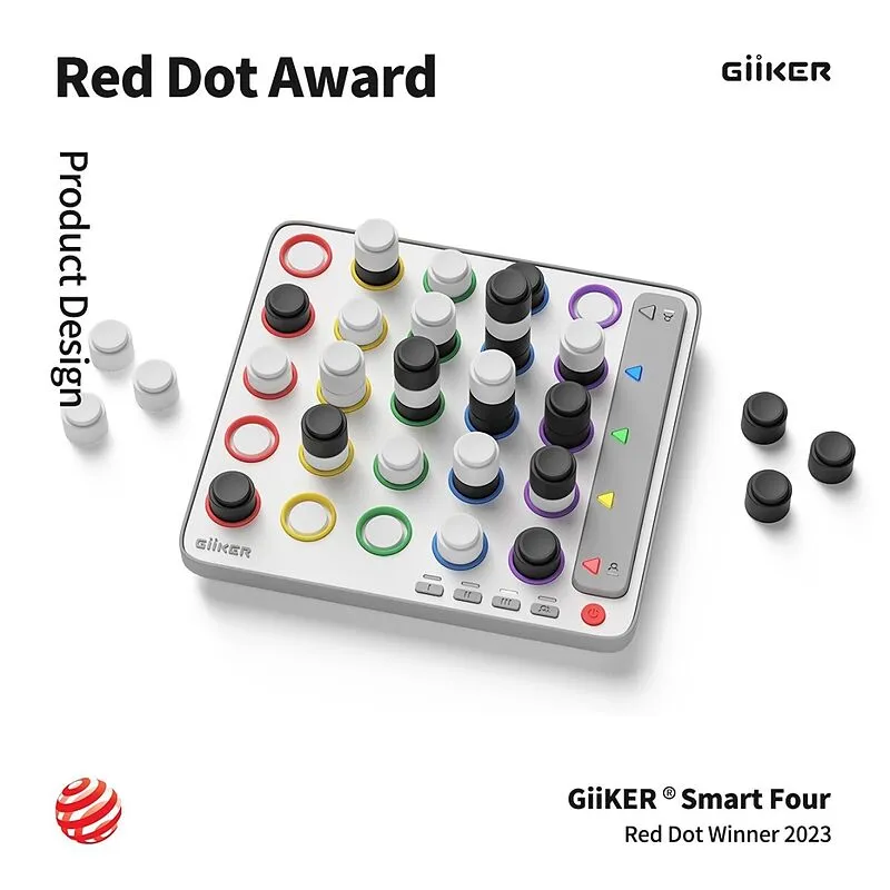 div class"product-description"> ## GiiKER Smart Four 3D "Vier-in-einer-Reihe" mit KI, Zugerkennung und interaktivem Feedback Smart Four ist "vier-in-einer-Reihe" in 3D als kompaktes, bildschirmfreies Handheld-Brettspiel. Das intelligente Spielbrett erkennt jed...