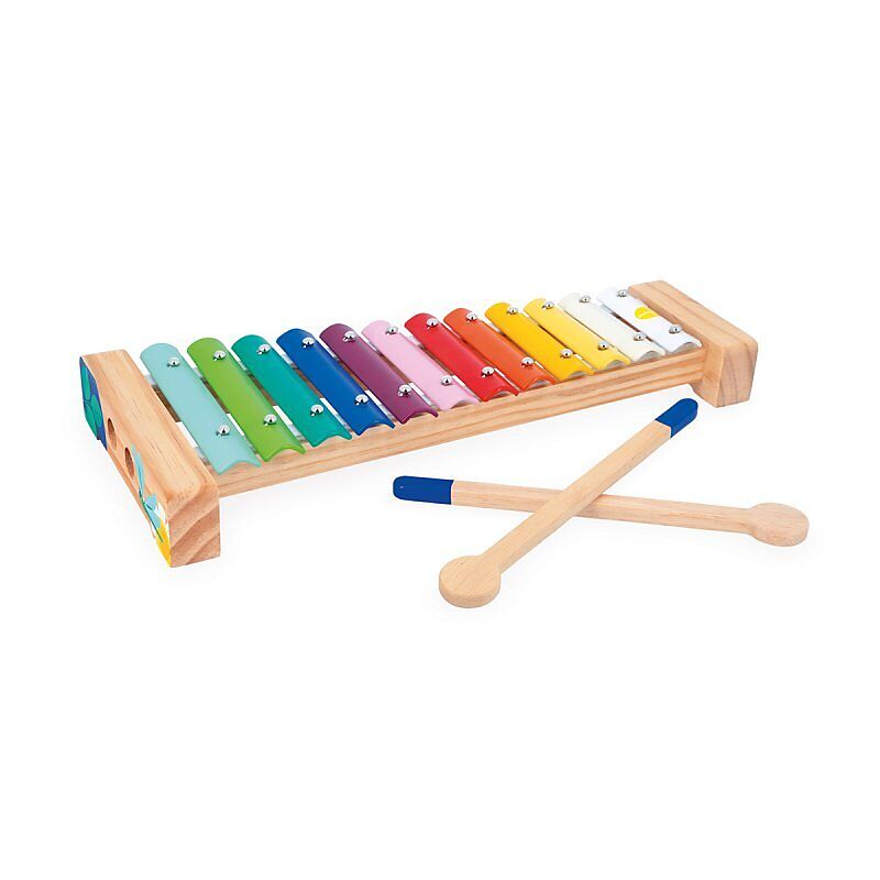 Do, Re, Mi, Fa, So ... Die kleinen Musiker üben für die große Show! Dieses hübsche Xylofon aus Holz und Metall in leuchtenden Farben begleitet Ihr Kind bei der Entdeckung von Klängen und ersten musikalischen Noten. Es besteht aus 12 verschiedenen Klangstäben u...
