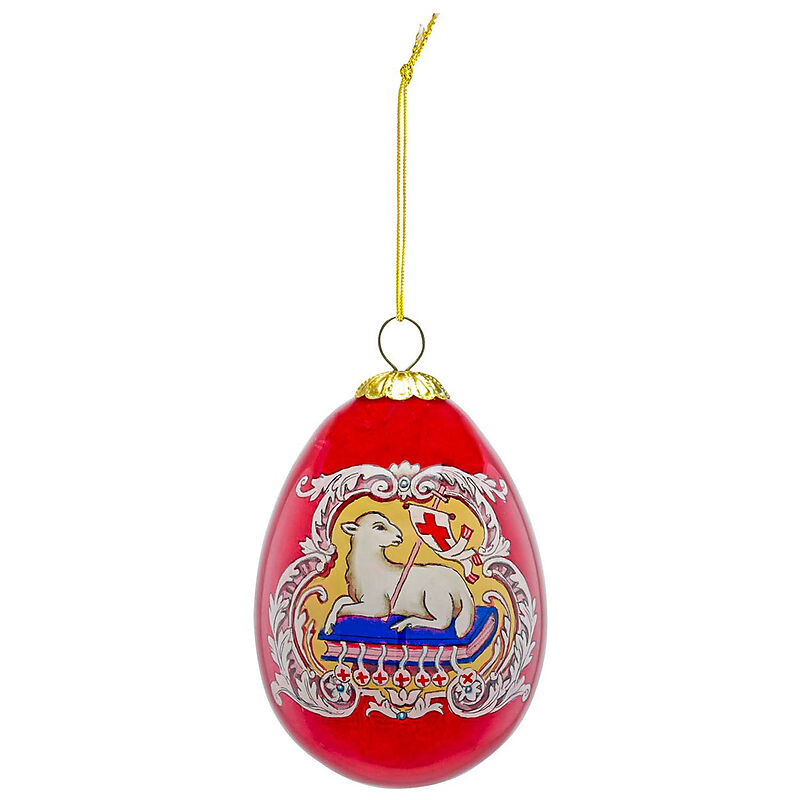 Dieses außergewöhnliche Osterei aus filigranem Glas ist mit seinem handbemalten Osterlamm-Motiv ein Zeugnis erlesener Handwerkskunst. In der im Mittelalter entwickelten Technik der Hinterglasmalerei wurde das »Agnus Dei« seitenverkehrt mit lichtundurchlässigen...