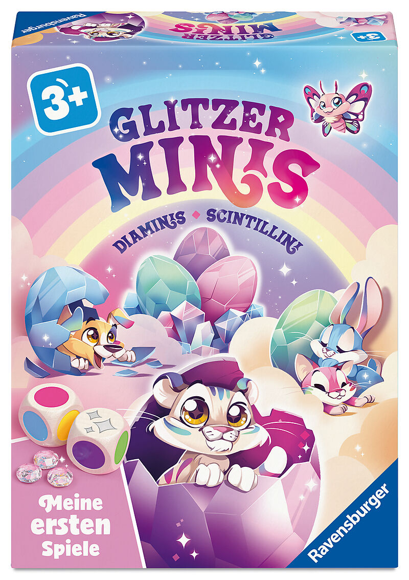 Es ist soweit! Die Glitzer Minis werden bald aus ihren Eiern schlüpfen! In diesem zauberhaften Kinderspiel würfeln Kinder ab 3 Jahren mit zwei bunten Würfeln, um wunderschöne, funkelnde Eier aus der Mitte oder von anderen Spielern zu sammeln und zu tauschen. B...